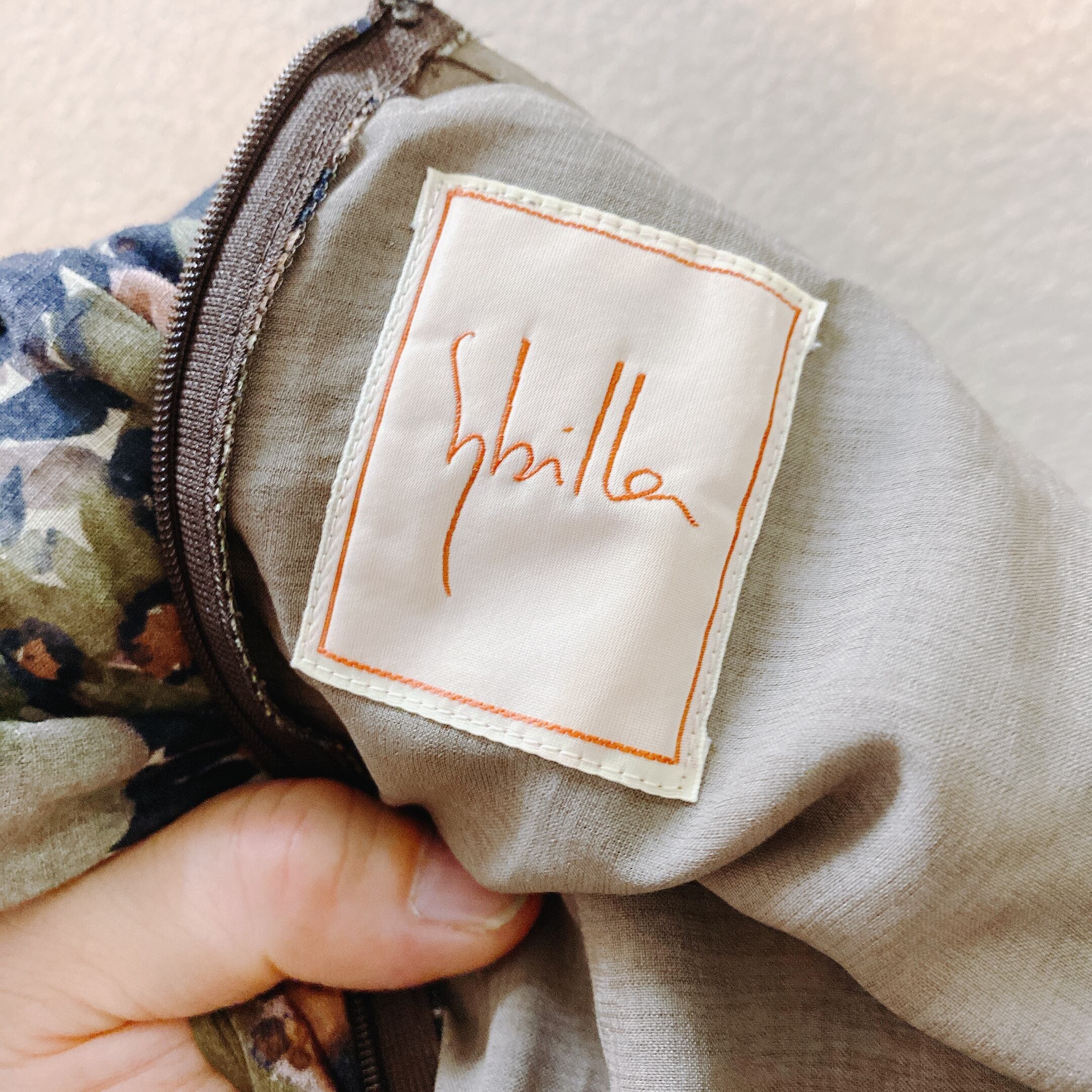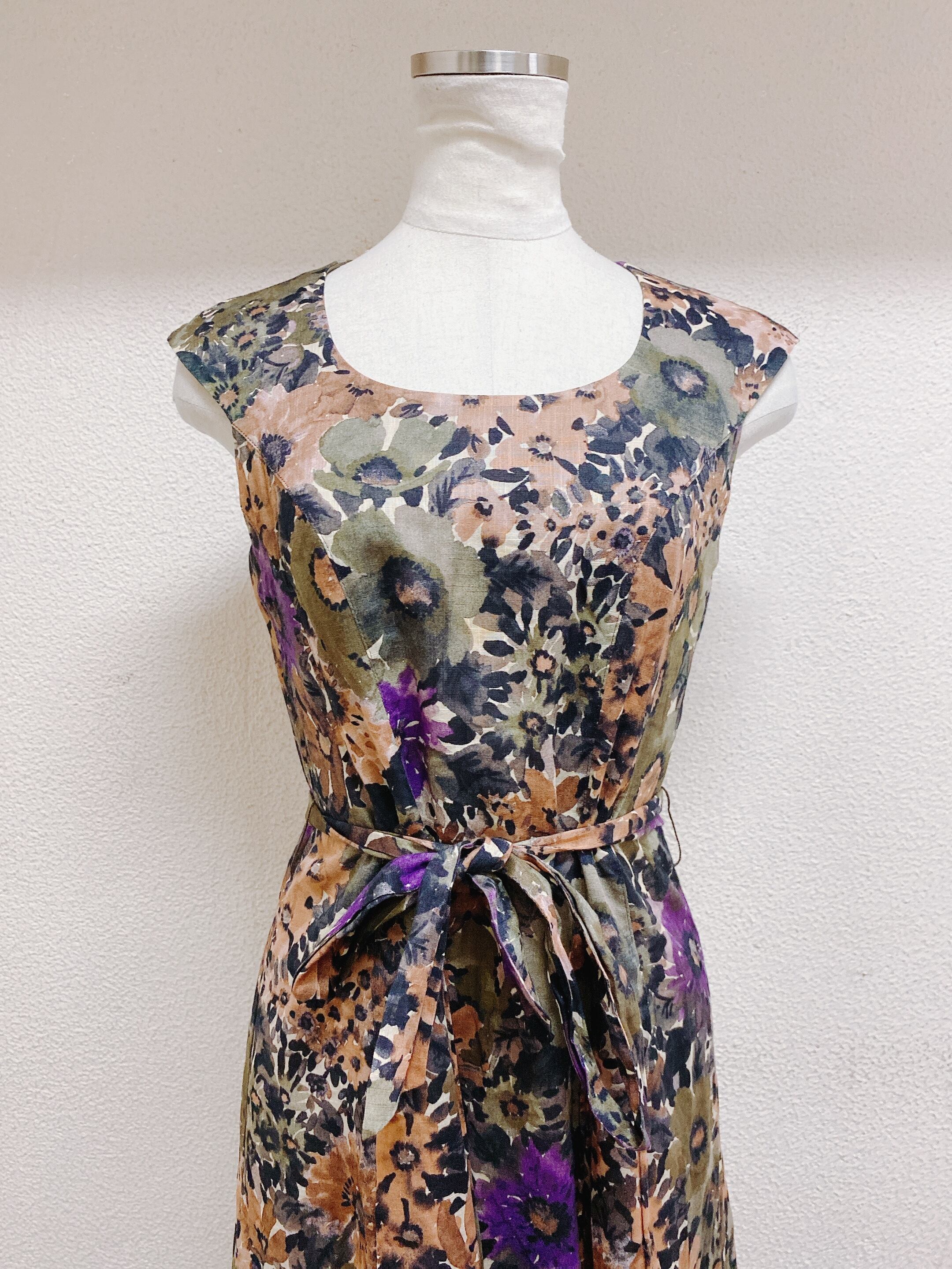 シビラ ノースリーブワンピース カーキ 茶 紫 花柄 Sybilla