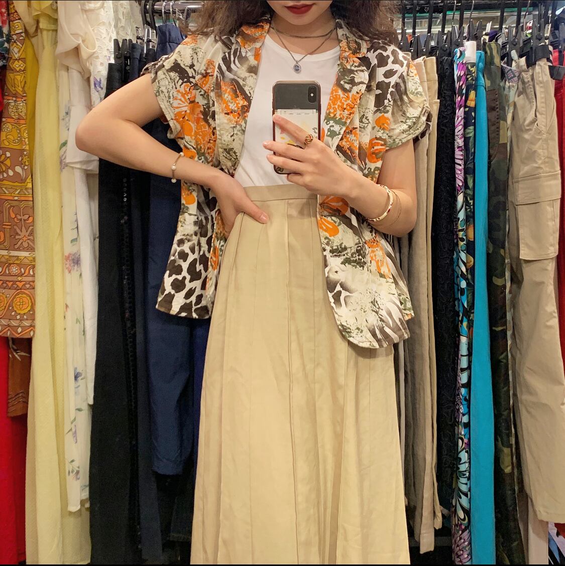vintage/jacket/半袖/ジャケット/総柄/オレンジ/焦茶色
