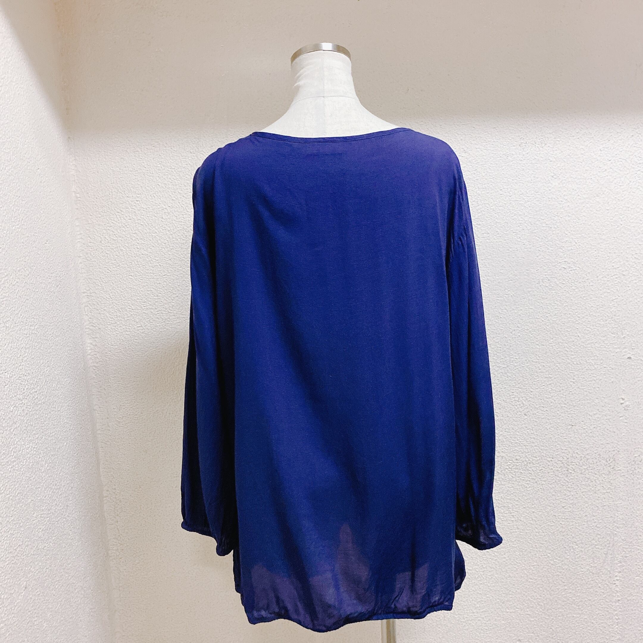 vintage 長袖トップス 紺 ラインストーン ヴィンテージトップス