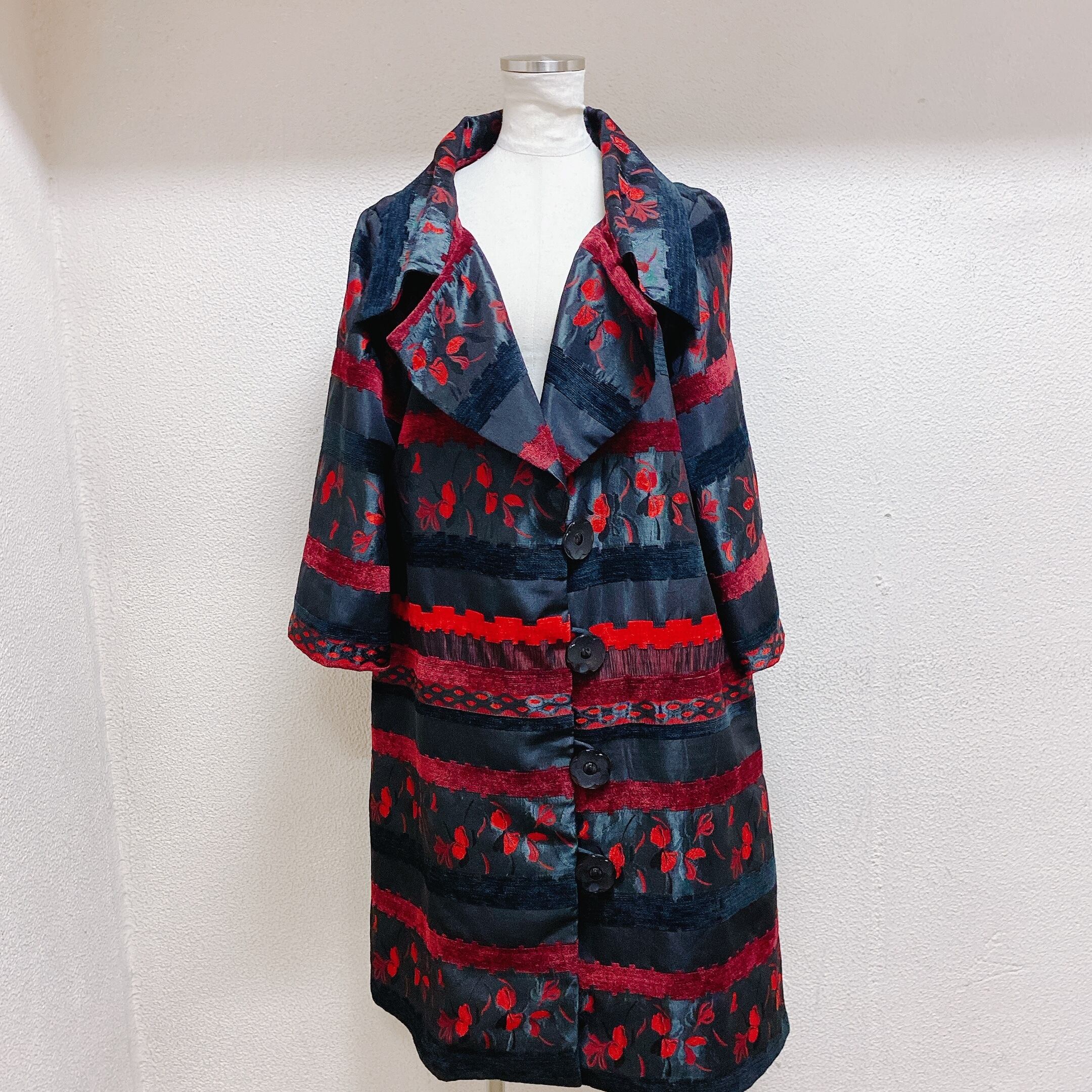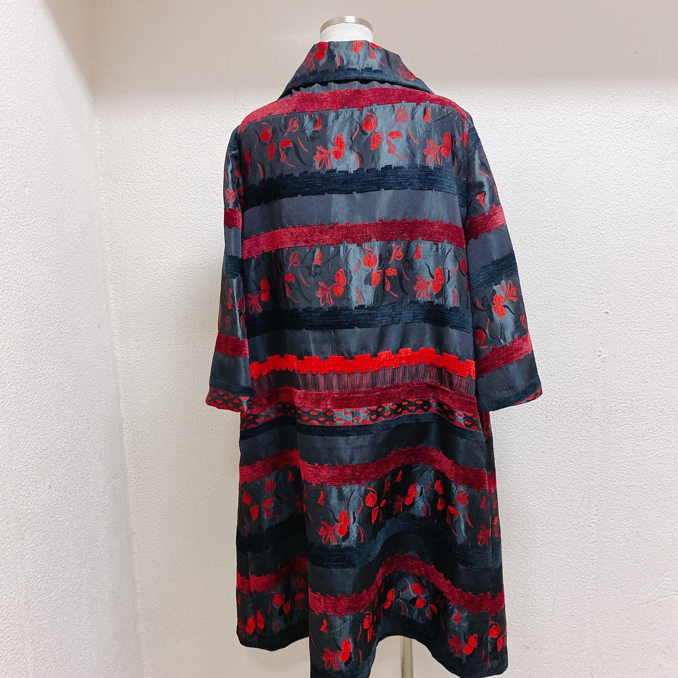 ヴィンテージ コート 黒 赤 花柄 vintage coat