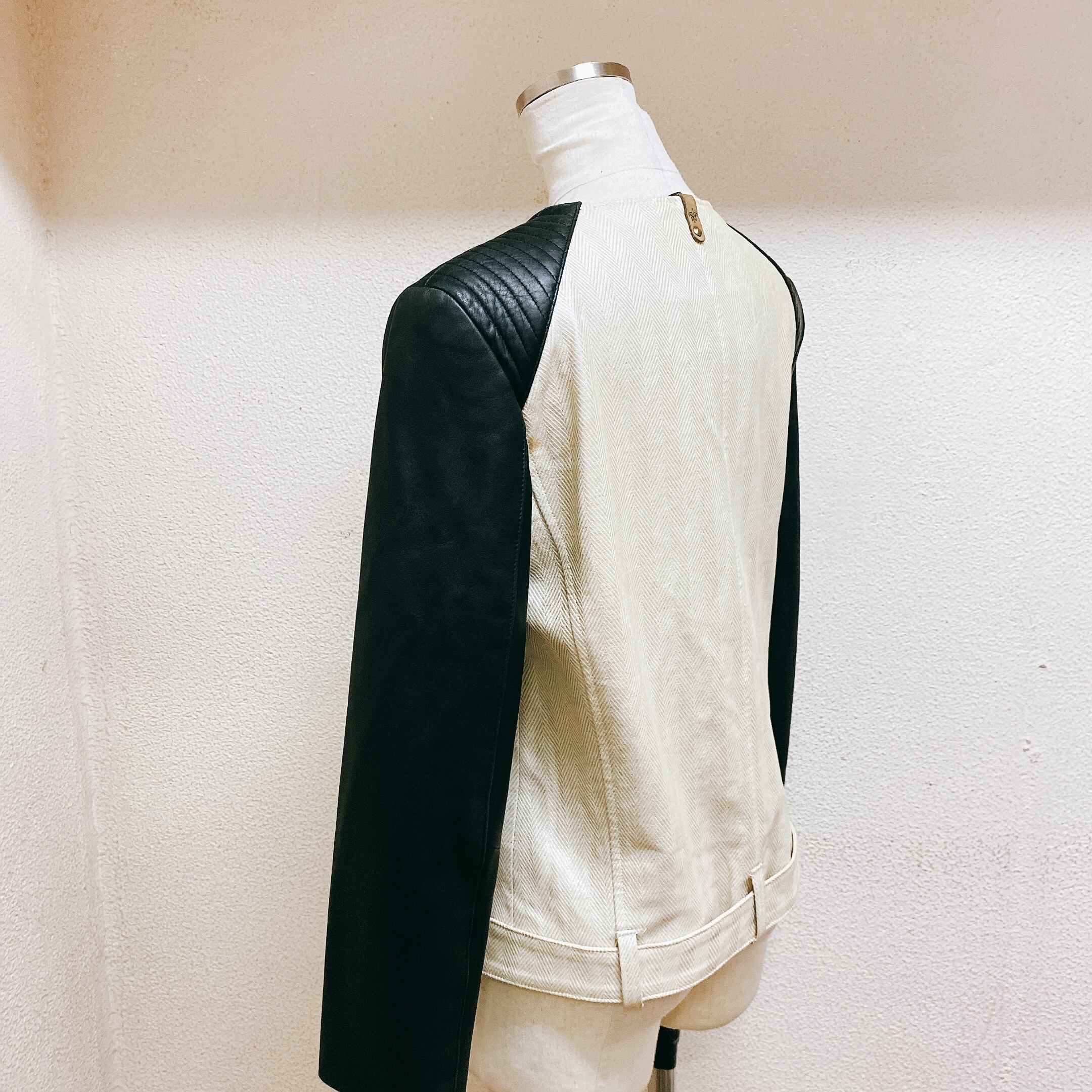 ● 素材 表地 麻52%、綿48%、肩袖部分 ラムレザー、裏地 ナイロン100%
