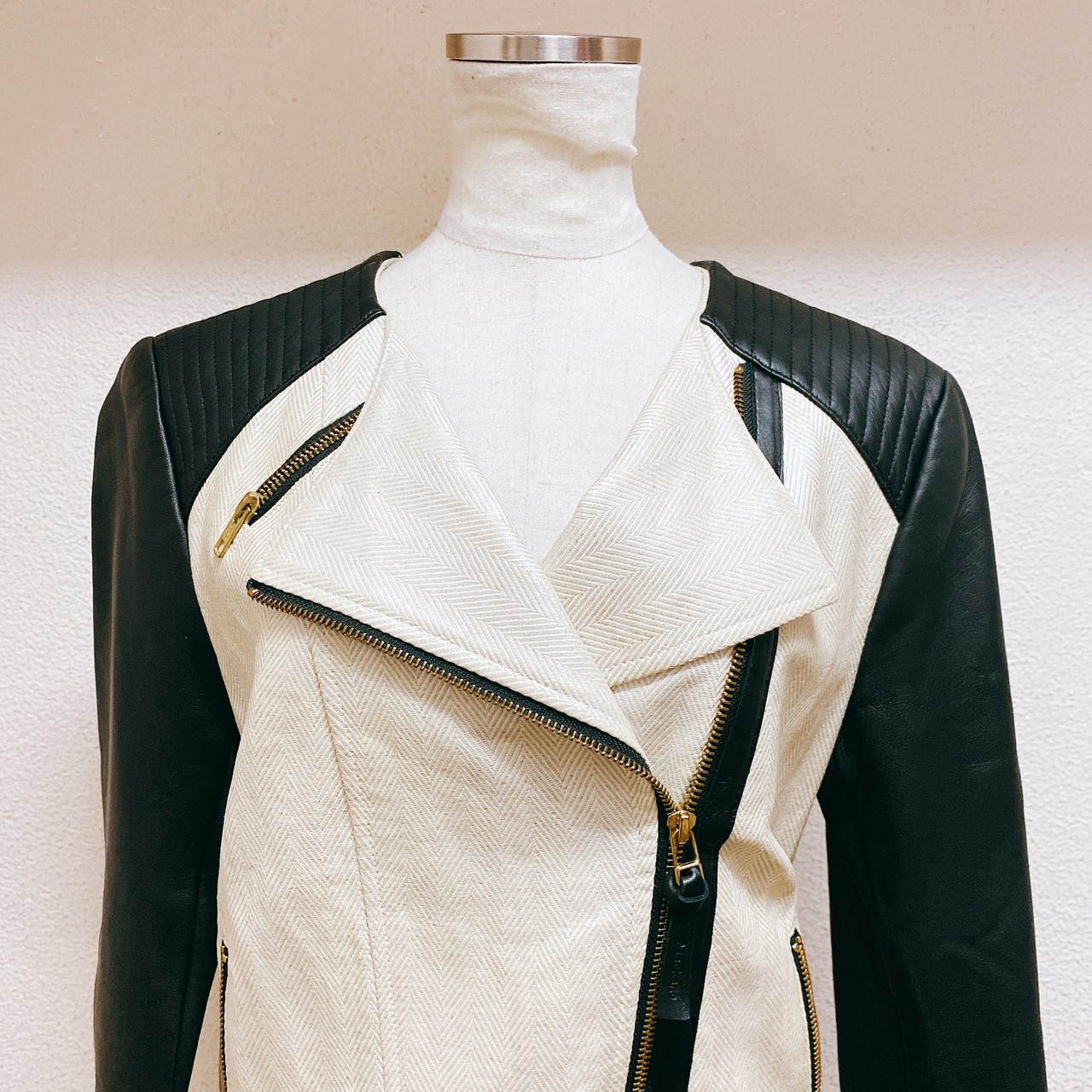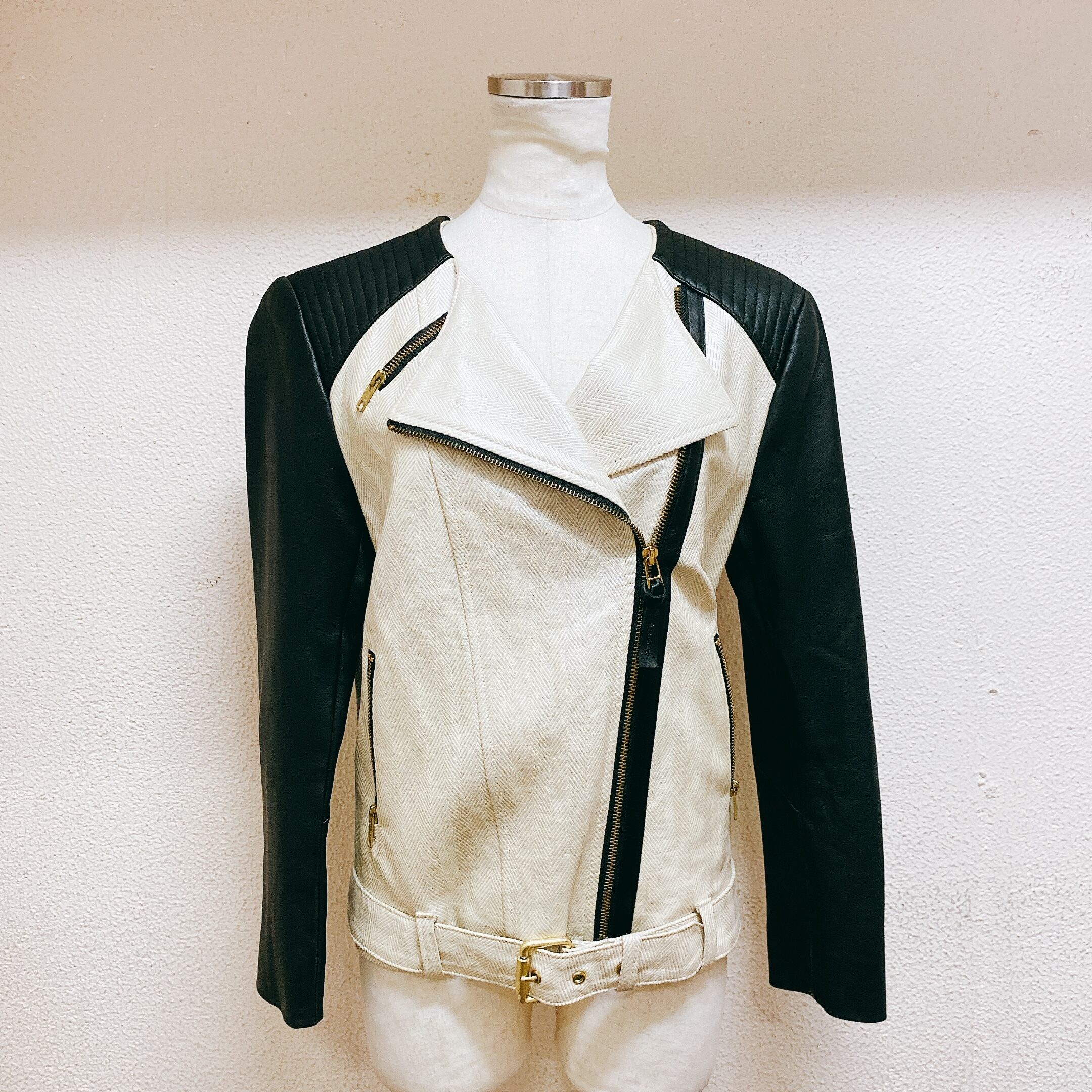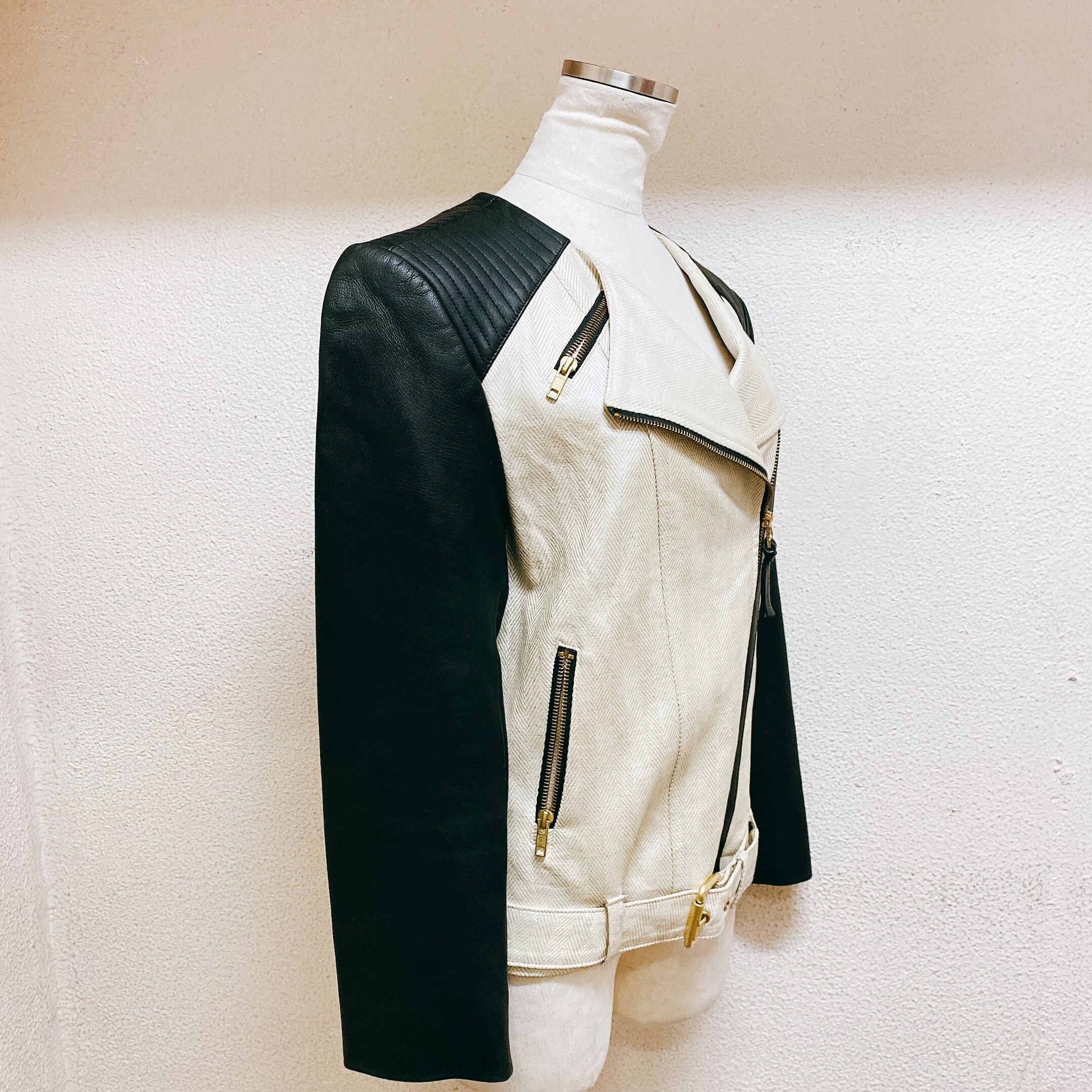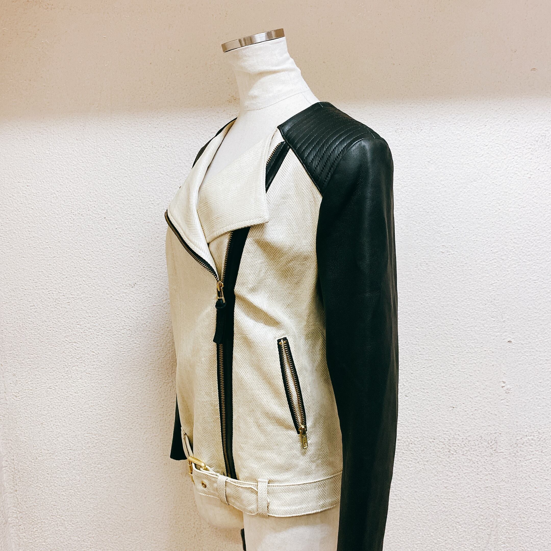 マッカージュ ライダースジャケット ベージュ 黒色 ラムレザー Mackage
