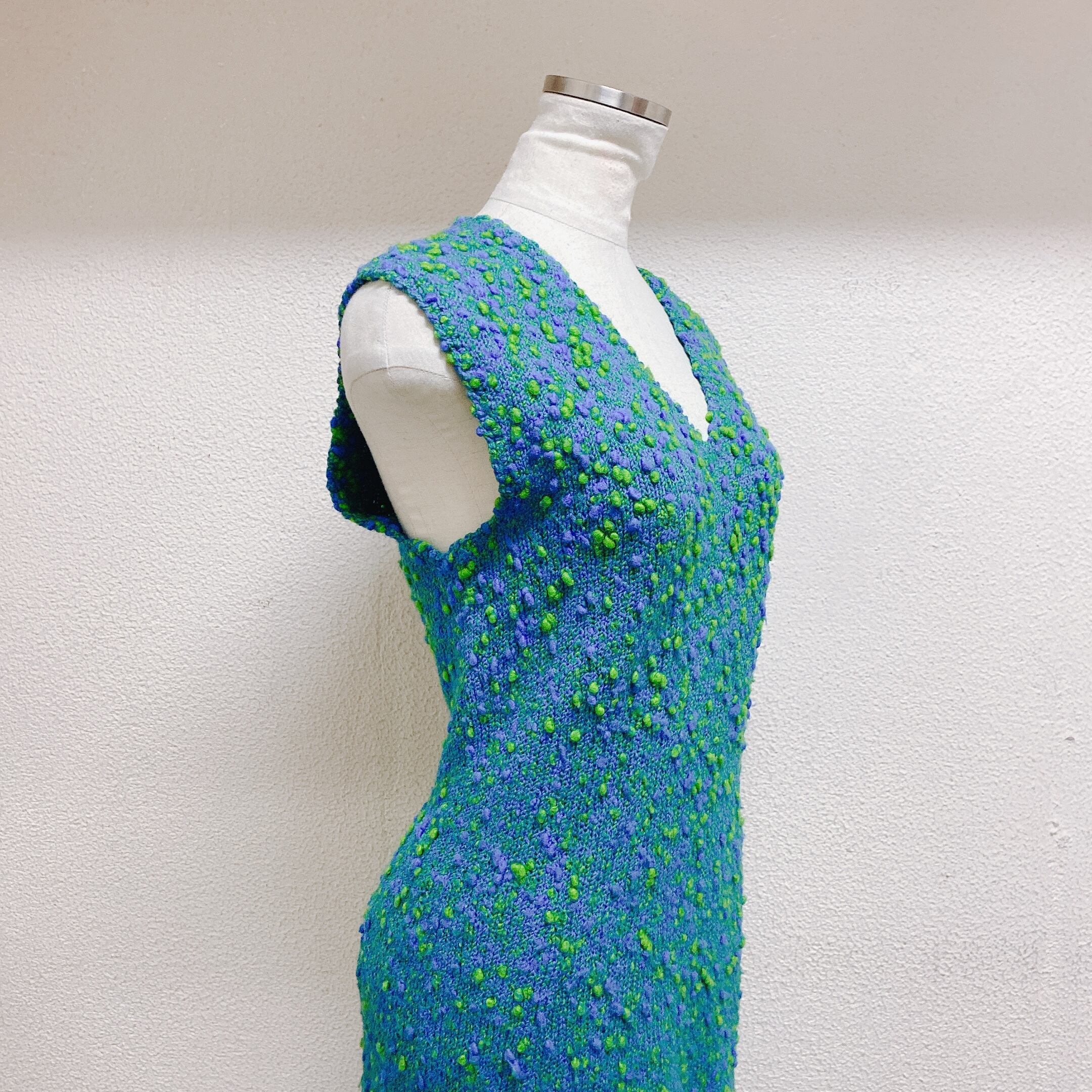 ヴィンテージ ウールワンピース 青 緑 vintage onepiece