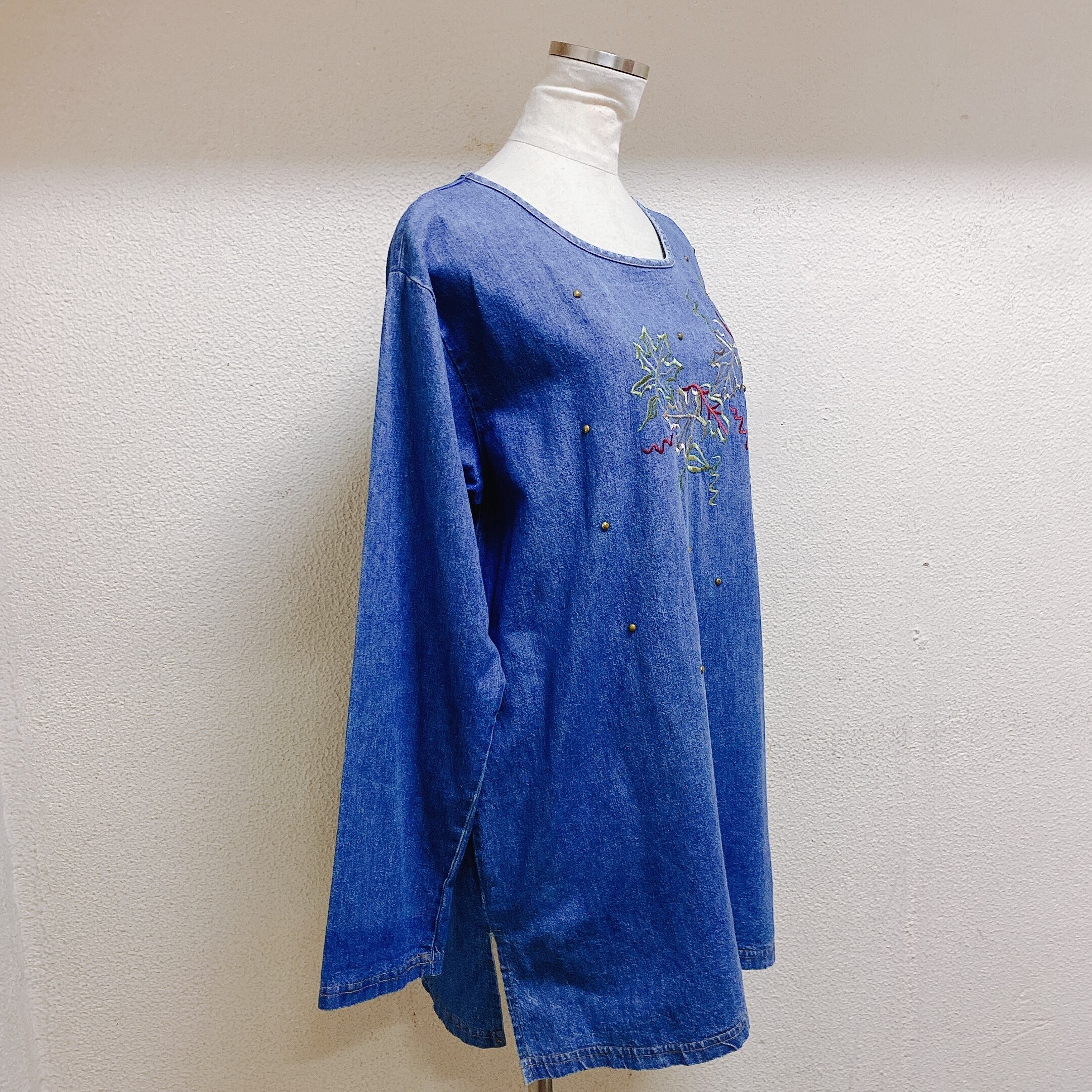 ヴィンテージ デニムトップス 花柄刺繍 スタッズ vintage denim tops 米国製