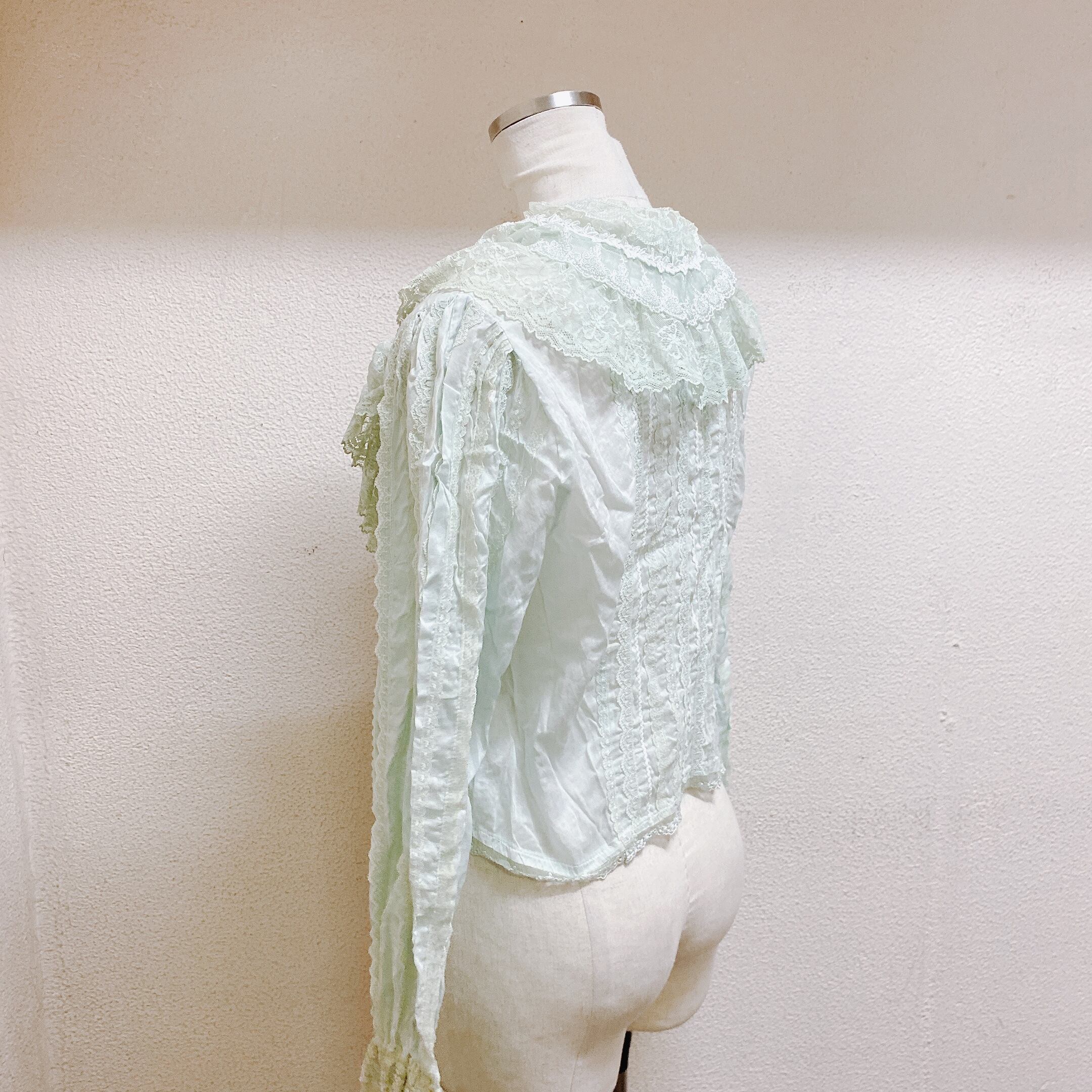 ヴィンテージ 長袖ブラウス 水色 レーヨン vintage blouse