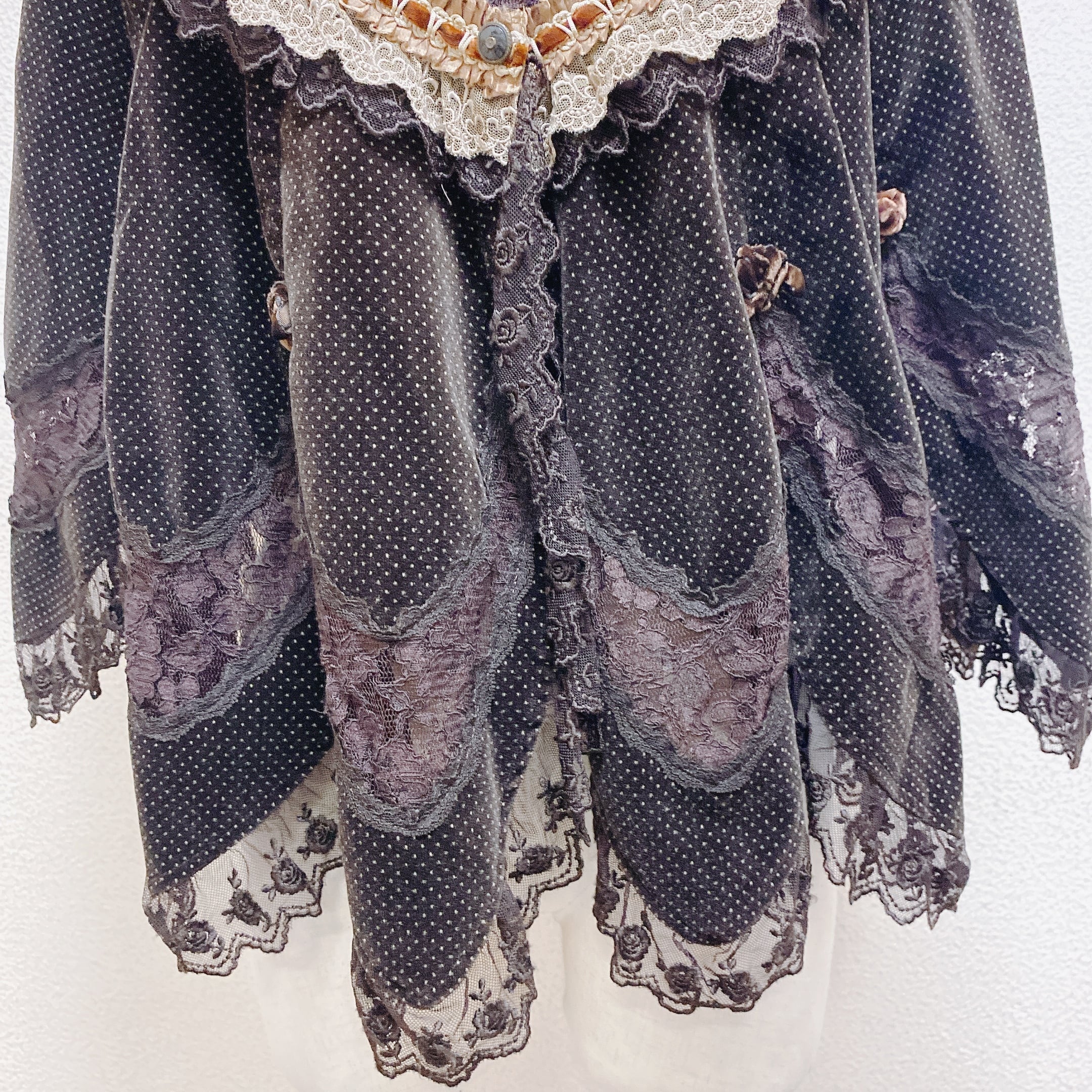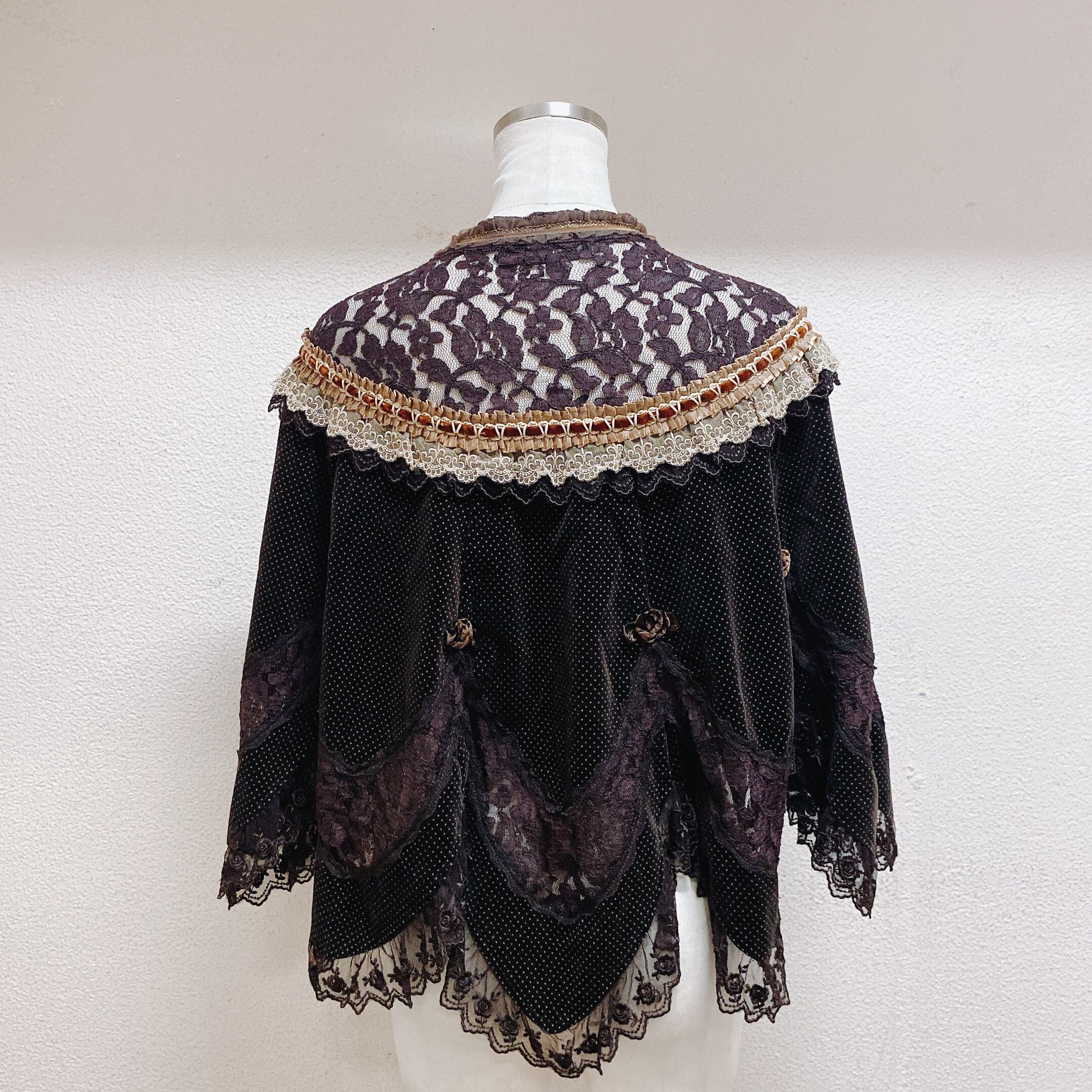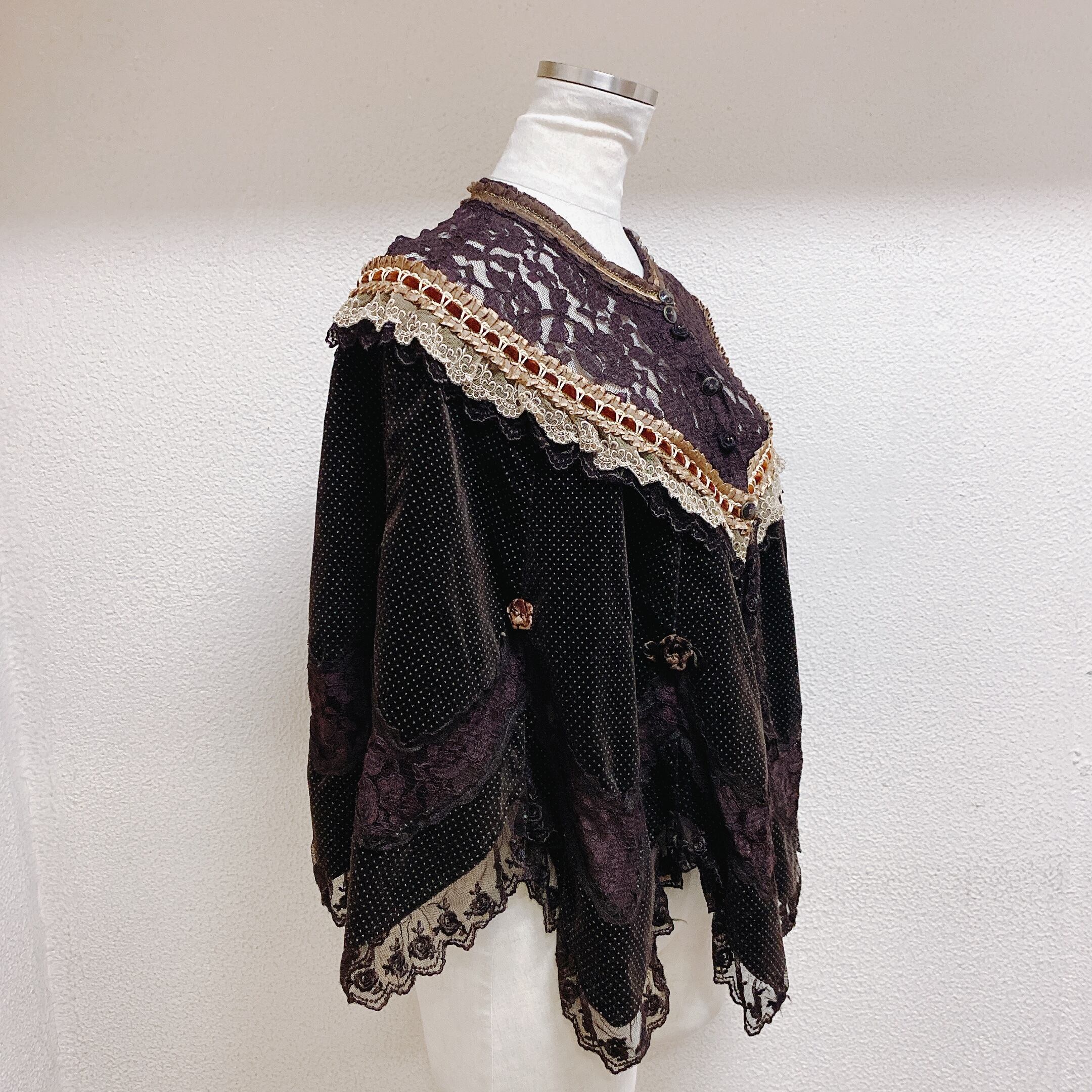 ヴィンテージ ポンチョ 焦げ茶 レース フリル vintage poncho