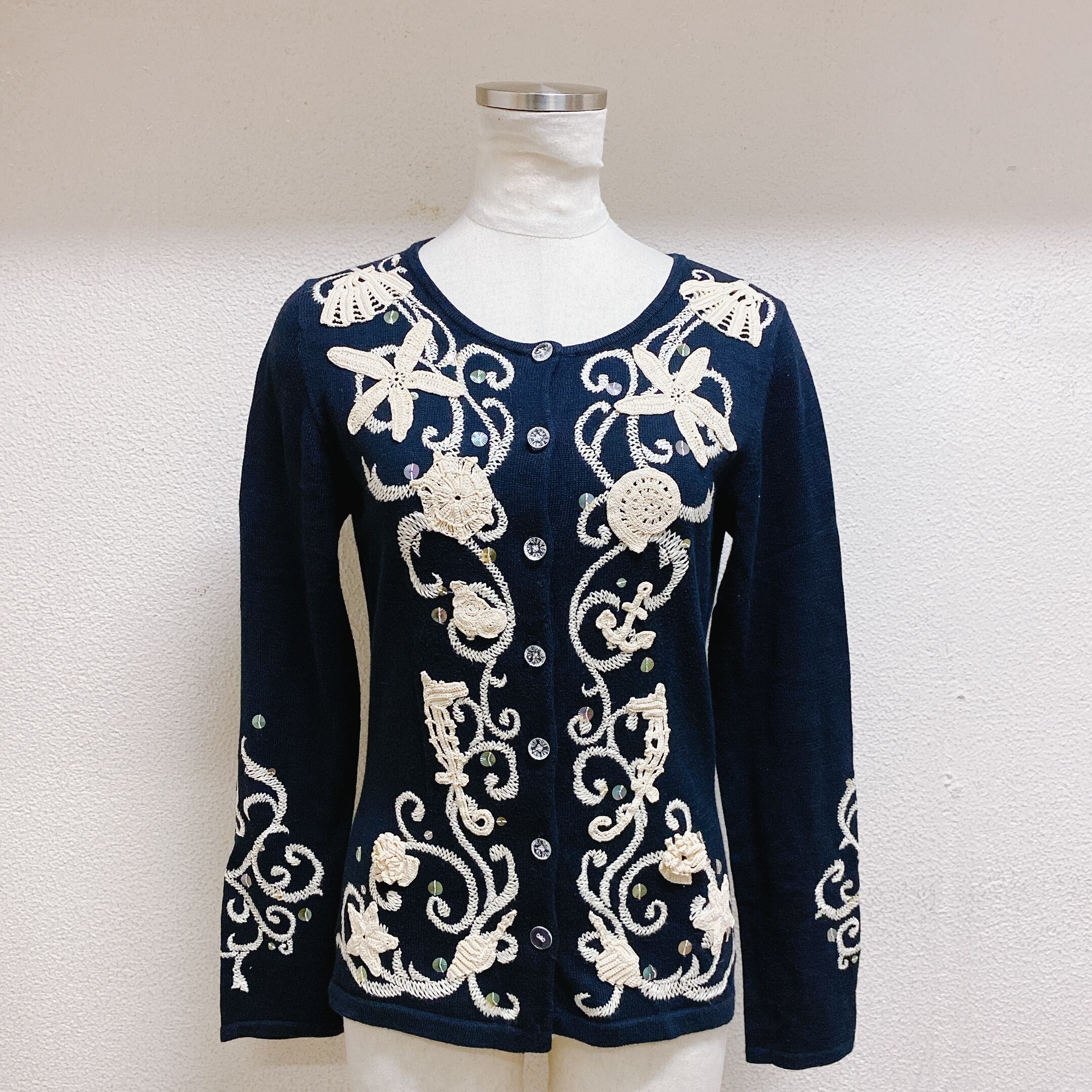 ケイタマルヤマ カーディガン 濃紺 花柄 刺繍 keita maruyama