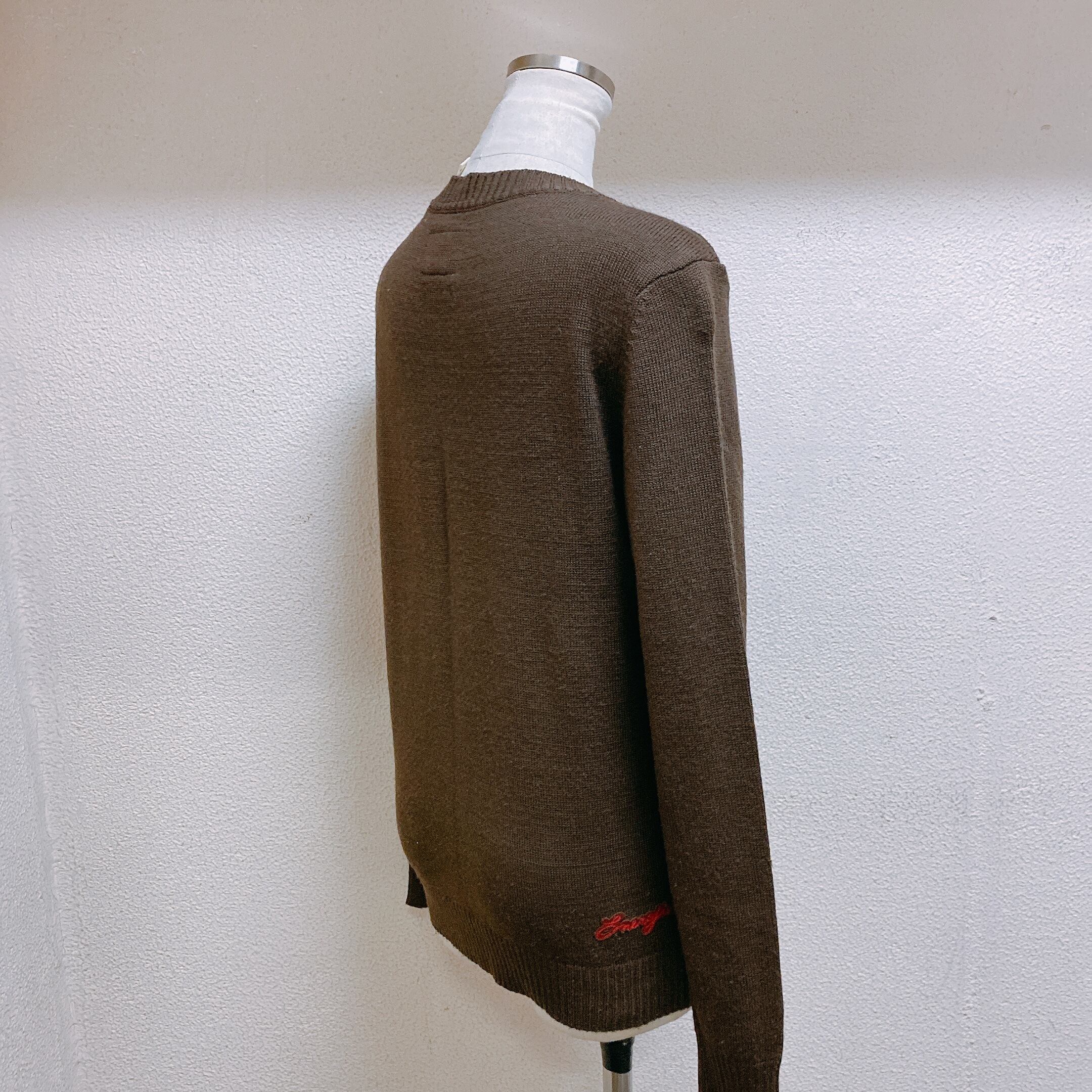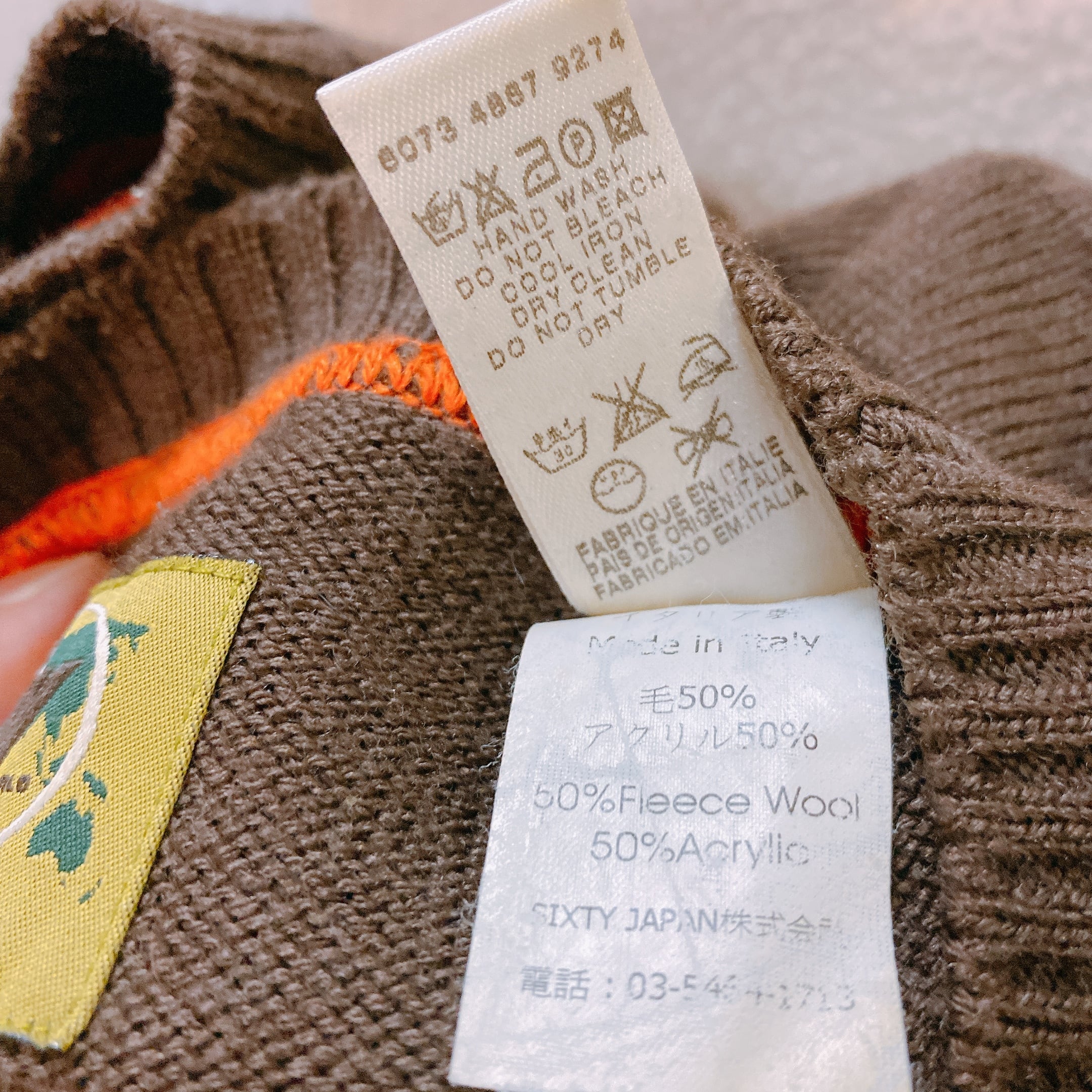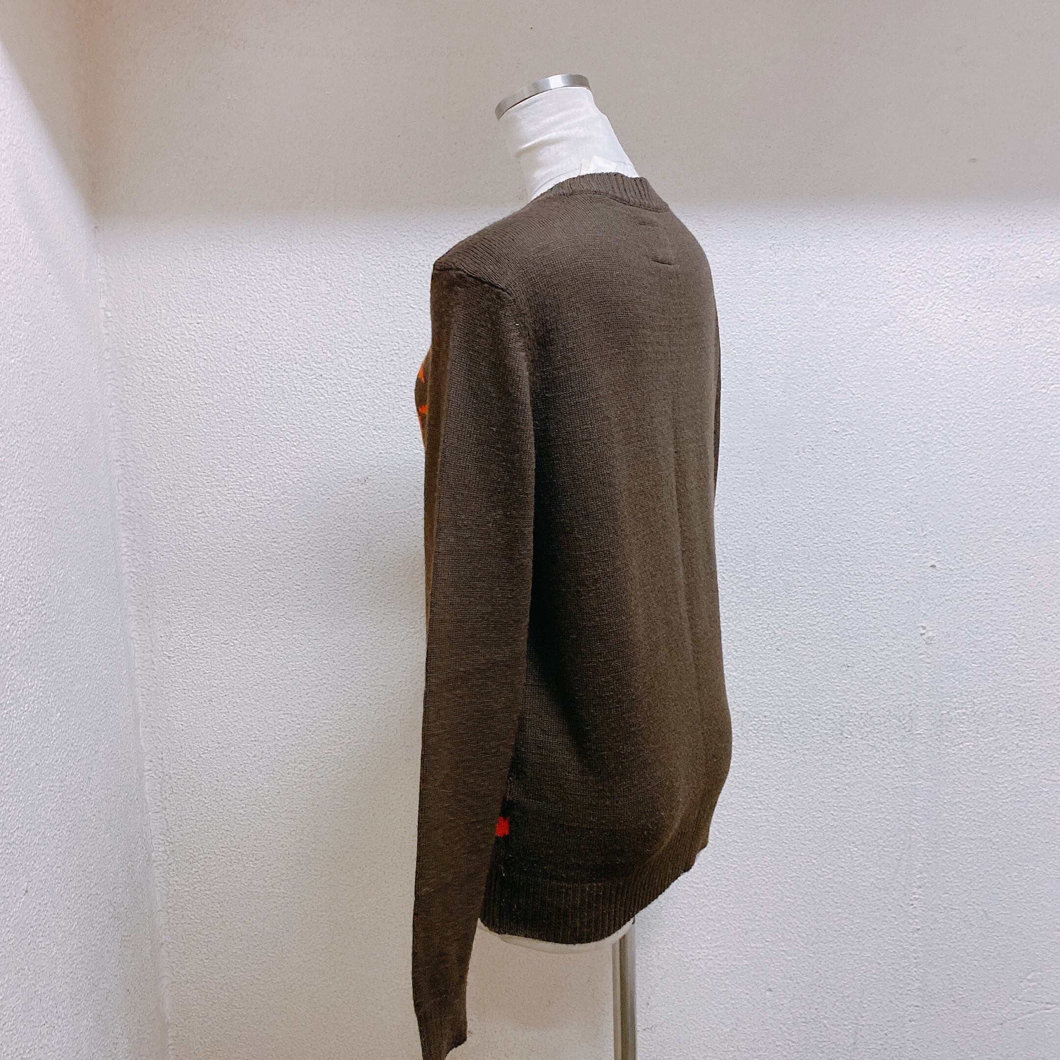 ヴィンテージ 長袖ニット 焦げ茶色 オレンジ色 飛行機柄 vintage knit