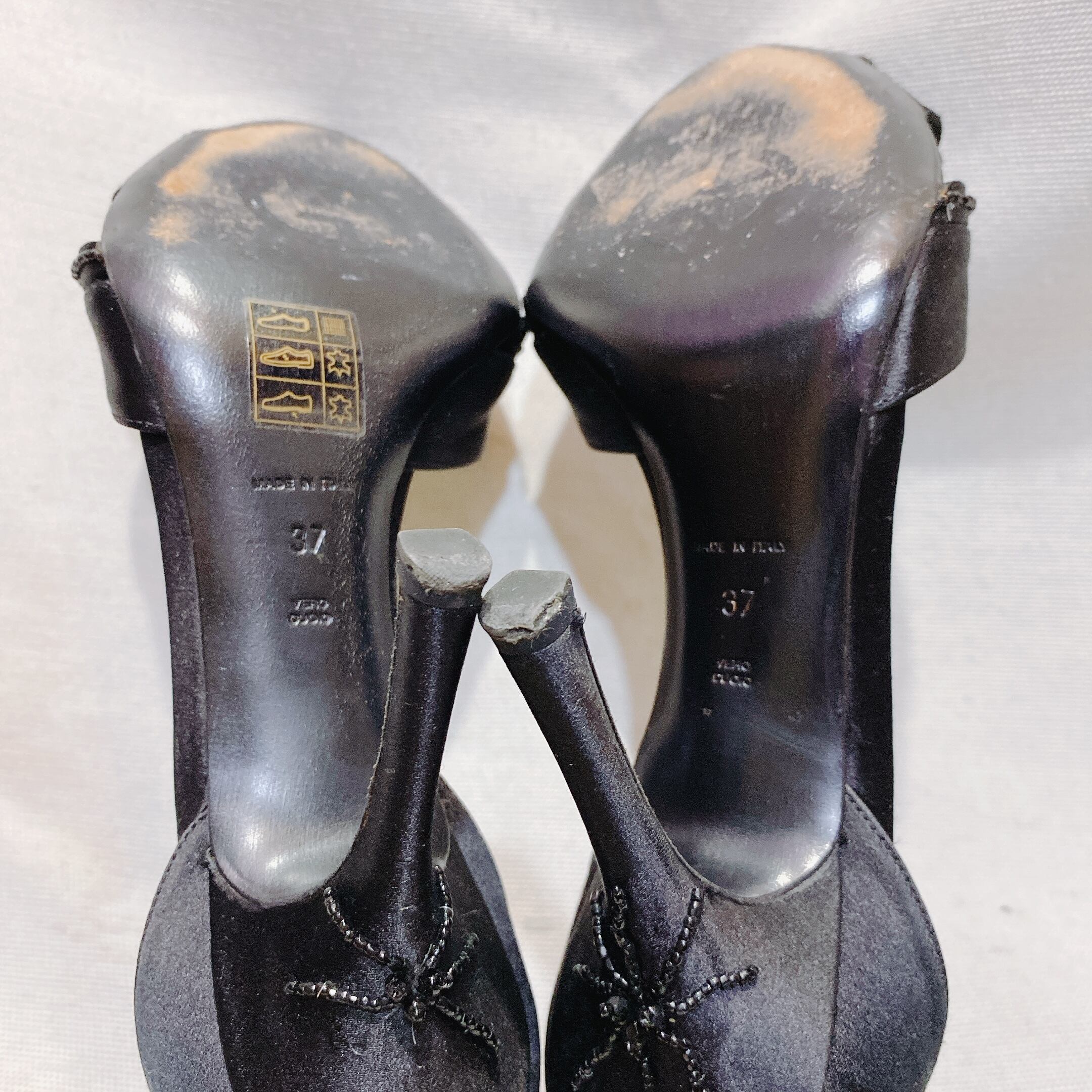 アルマーニ パンプス 黒 ビーズ サテン GIORGIO ARMANI