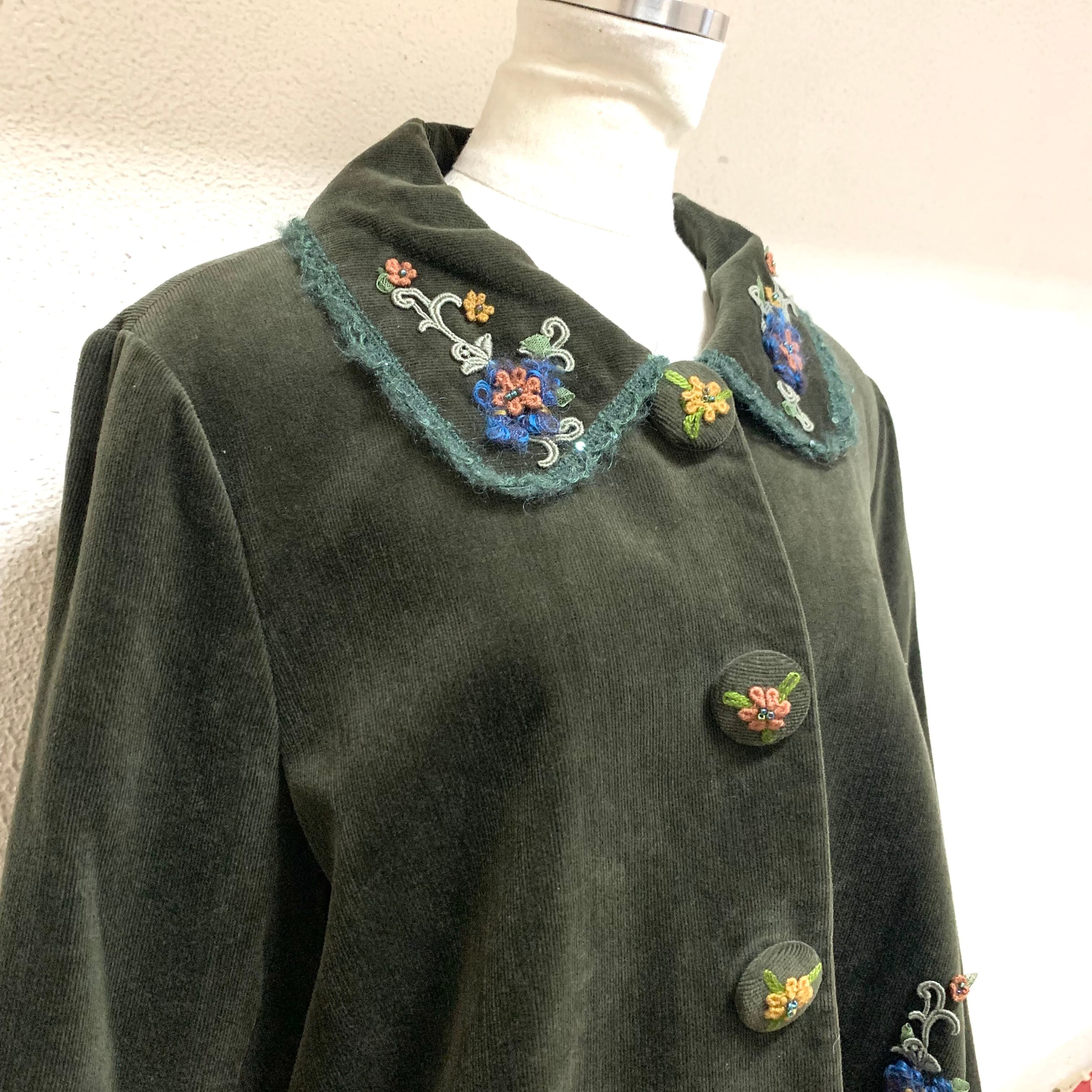 ノンノンドール ジャケット 花刺繍 レース カーキ