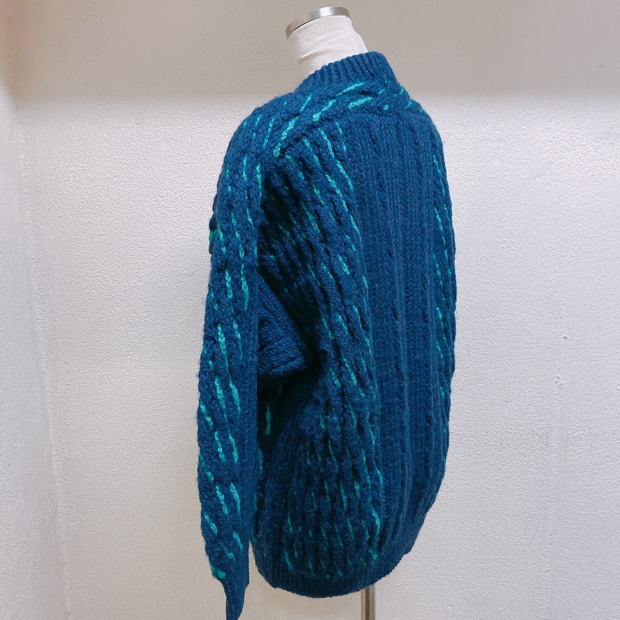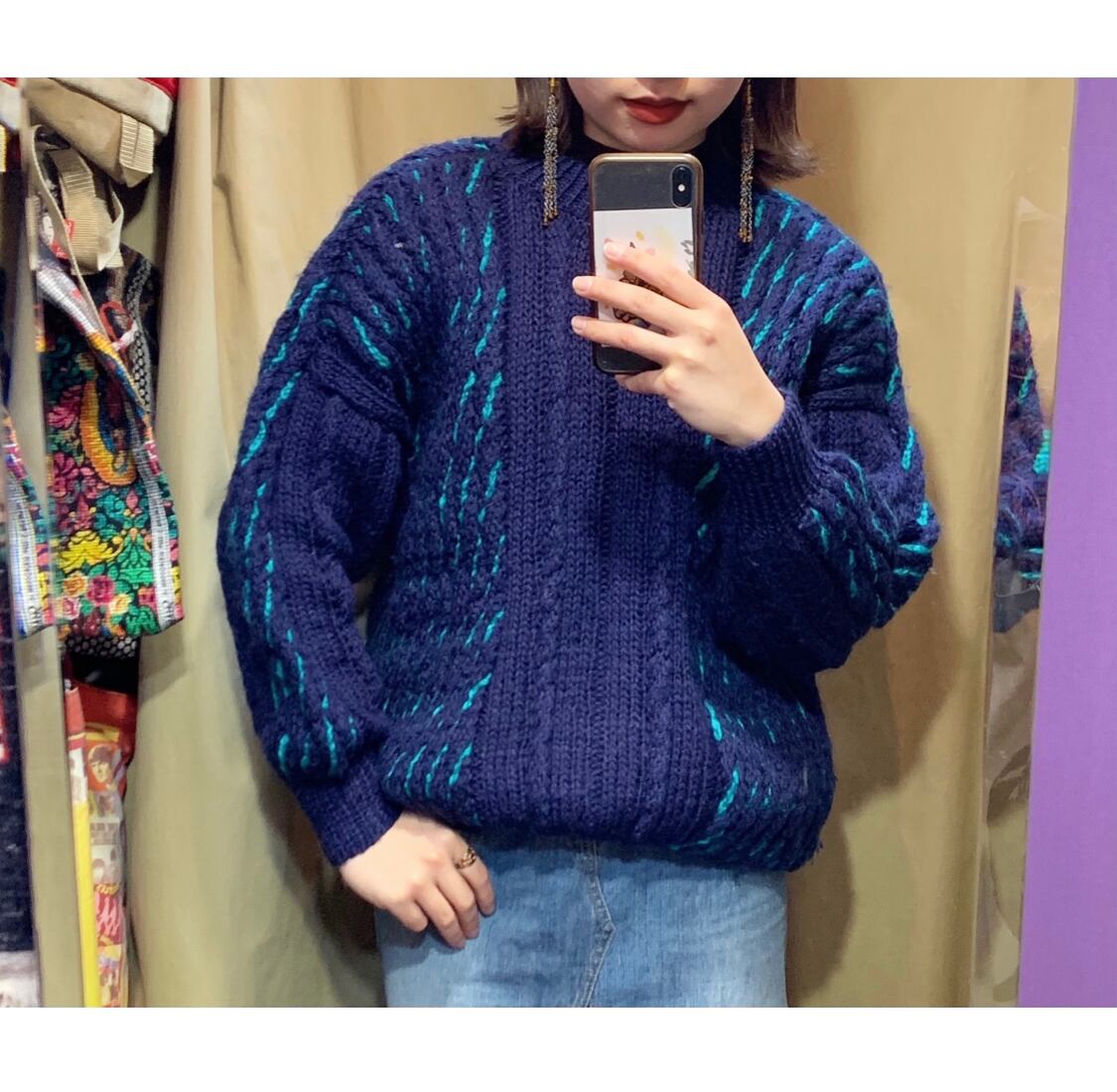 ヴィンテージ 長袖ニット 紺 ウール 3dニット ニュージーランド製 vintage 3D knit