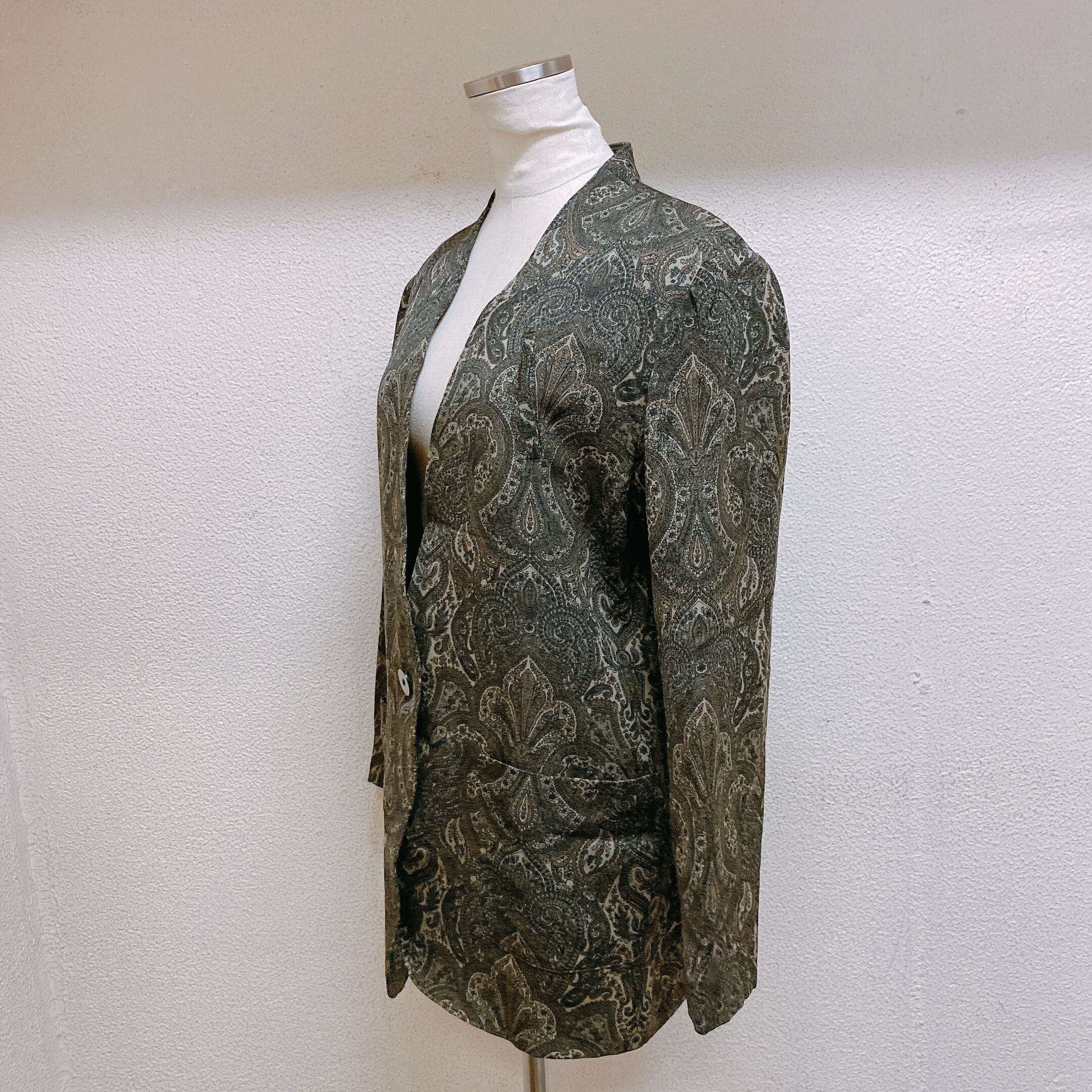 ハナエモリ ウールジャケット 黒グレー ペイズリー HANAE MORI