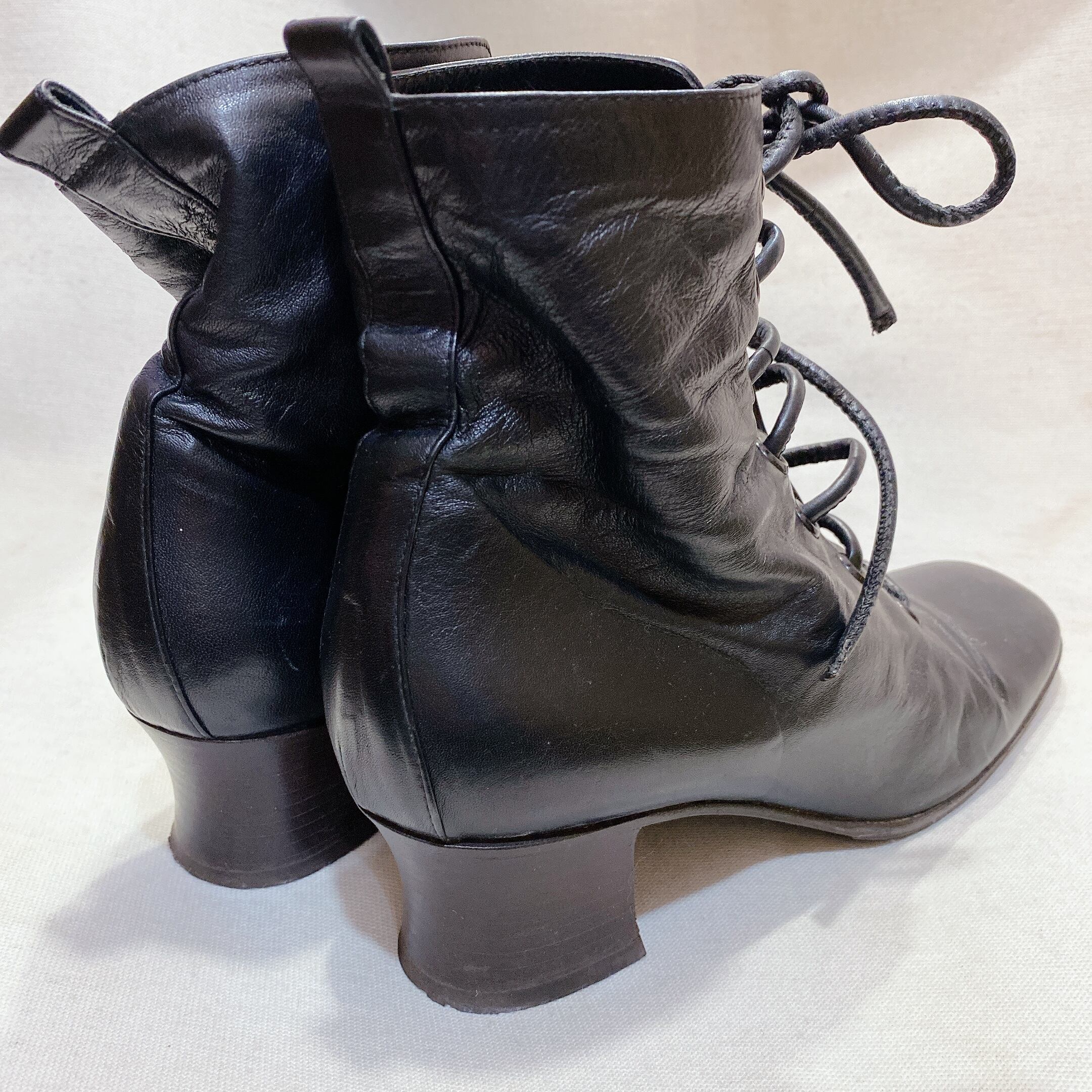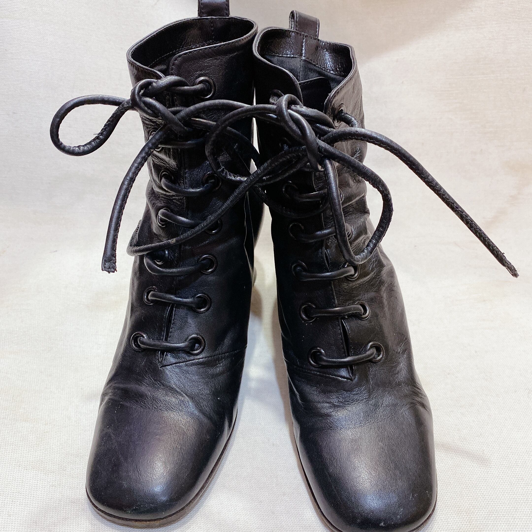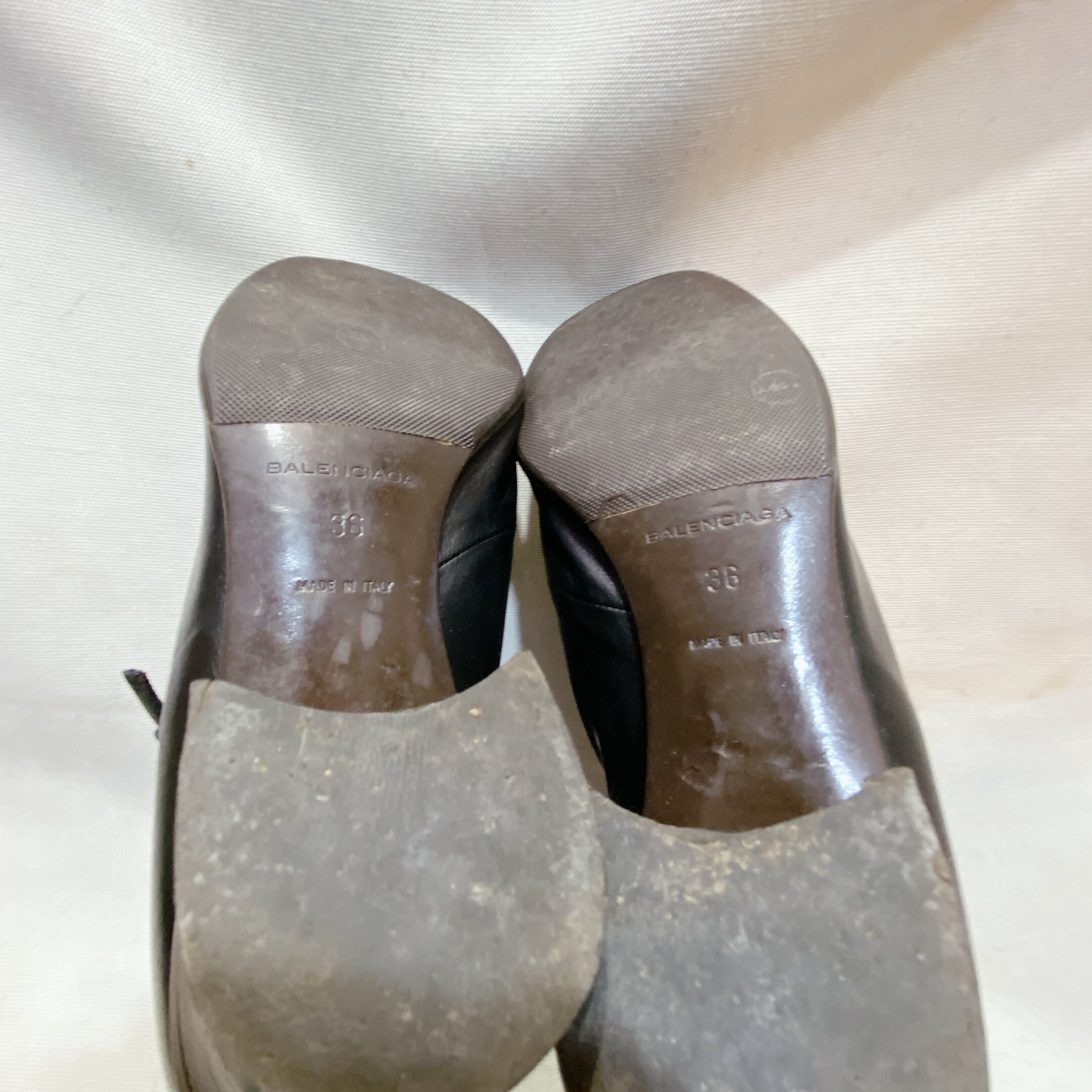 バレンシアガ ショートブーツ 黒 レザー 編み上げ BALENCIAGA