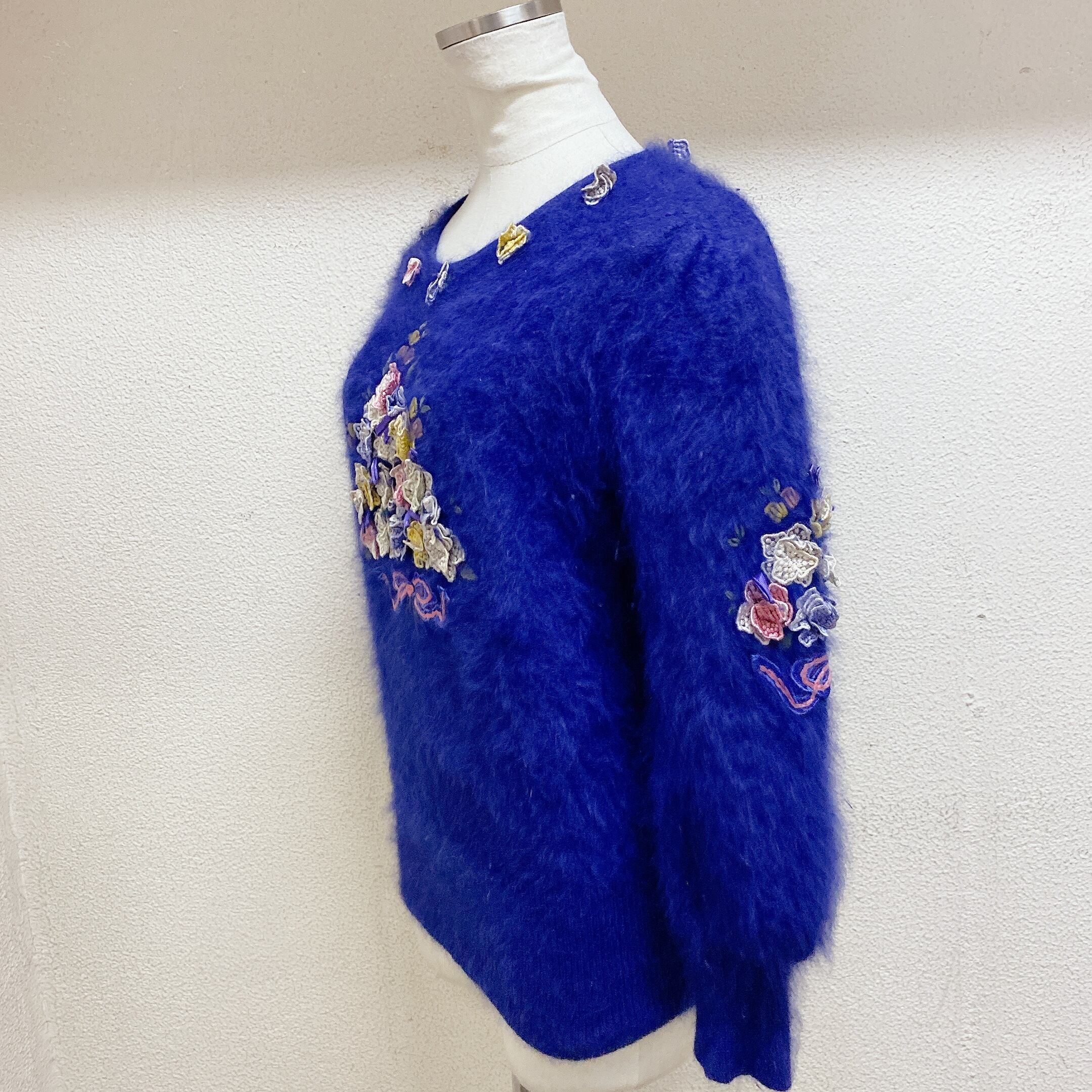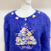 ヴィンテージ 長袖ニット 青 花モチーフ vintage knit sweater