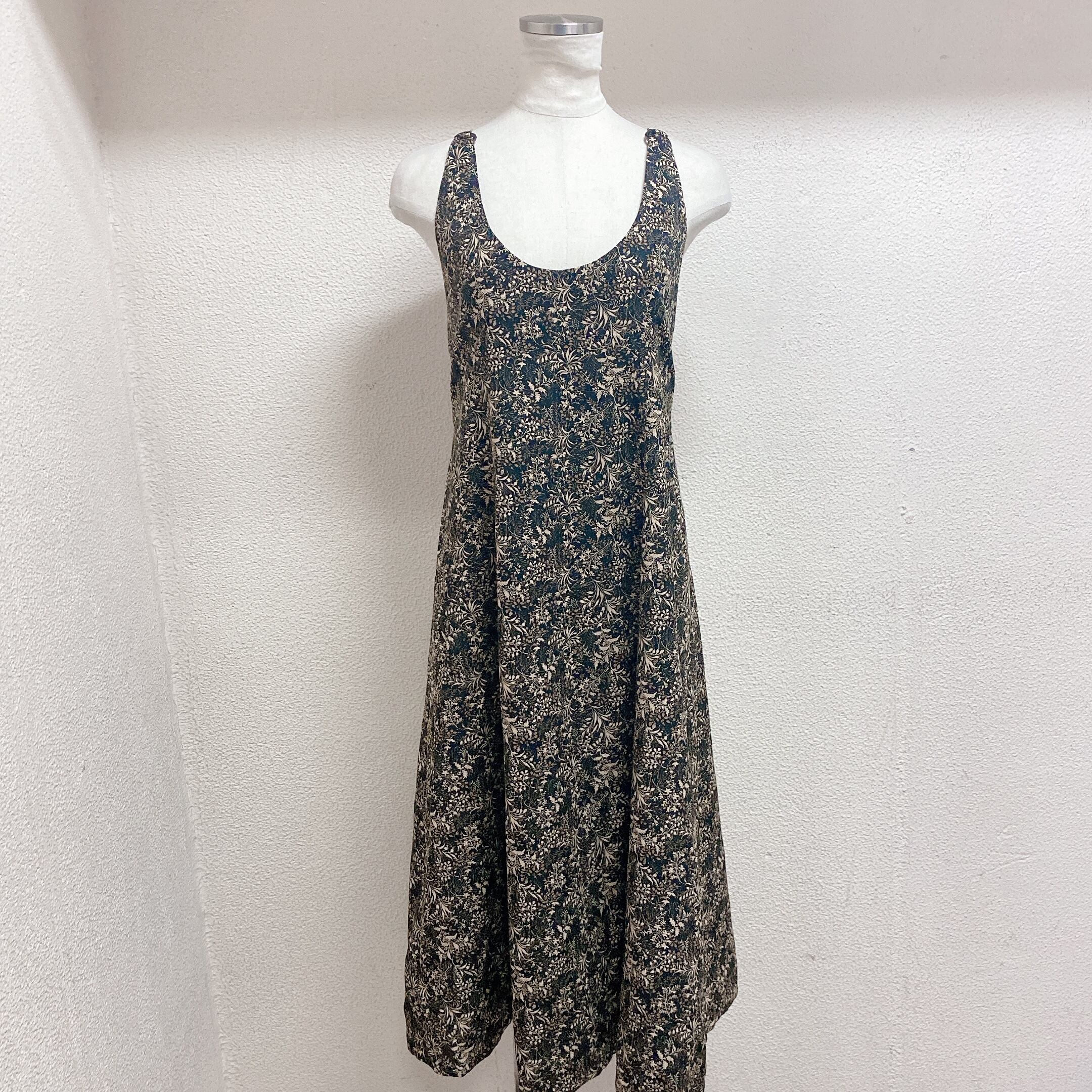 ヴィンテージ ノースリーブワンピース 黒 花柄 vintage onepiece