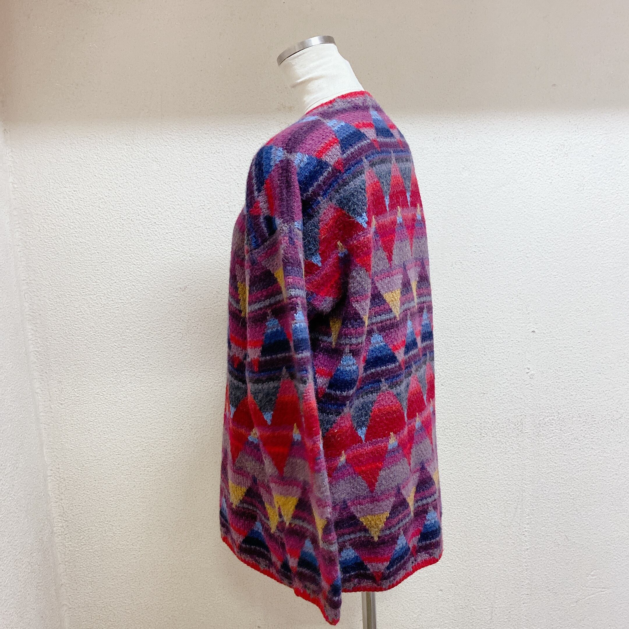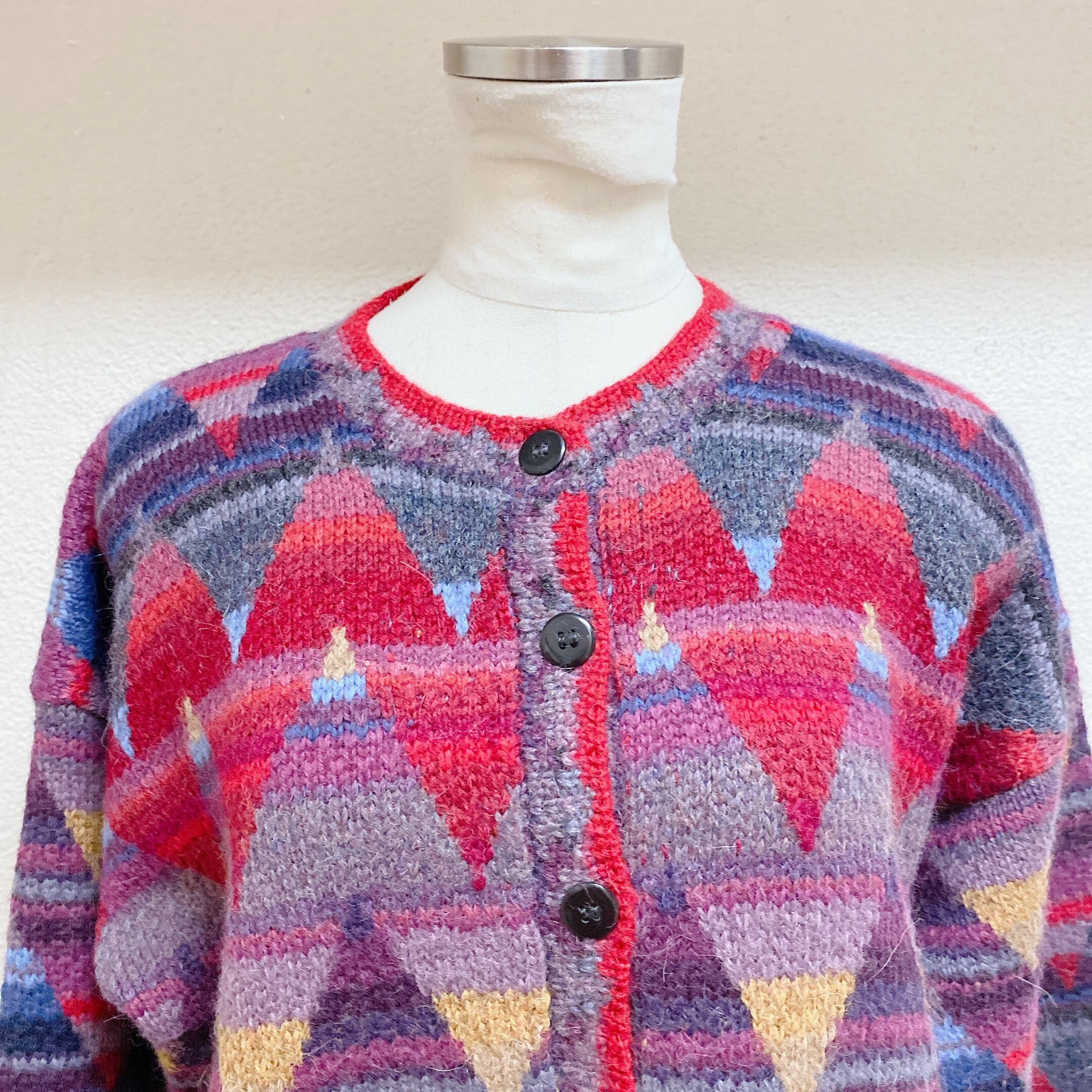 ヴィンテージ ニットカーディガン 赤 紫 グレー vintage knit cardigan アルパカ