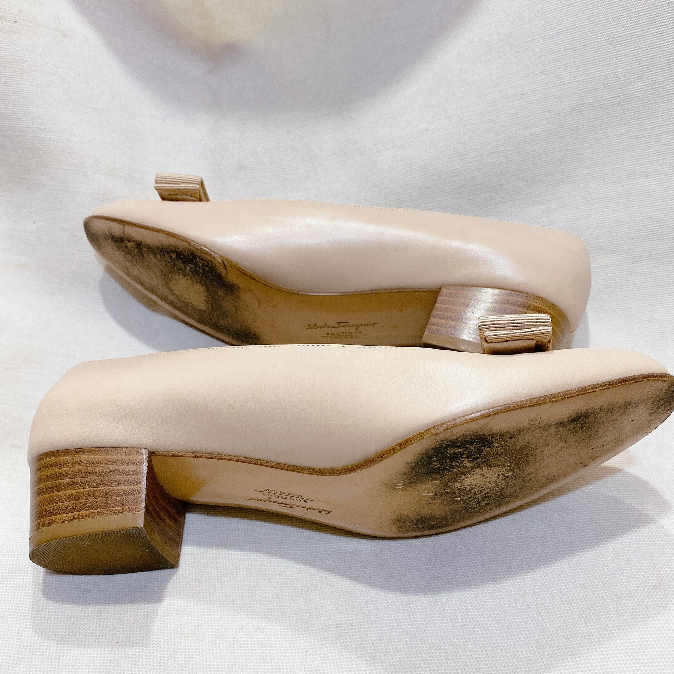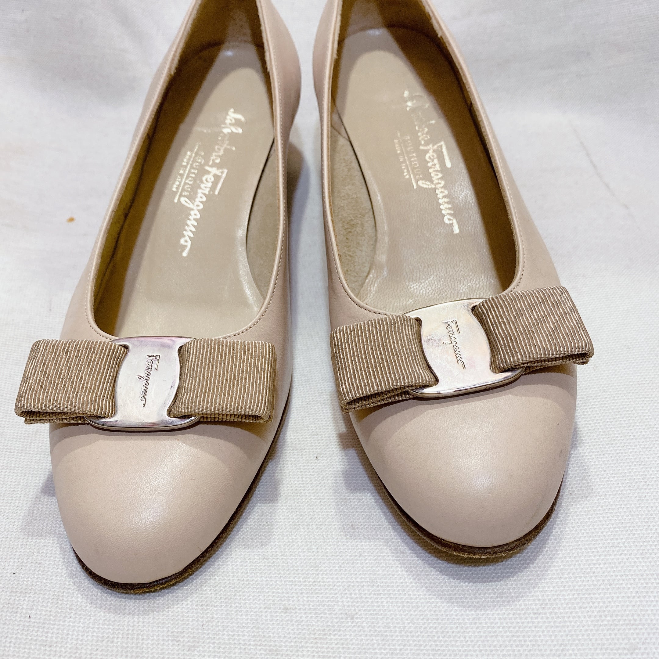 フェラガモ フラットシューズ ベージュ リボン バレエシューズ Salvatore Ferragamo