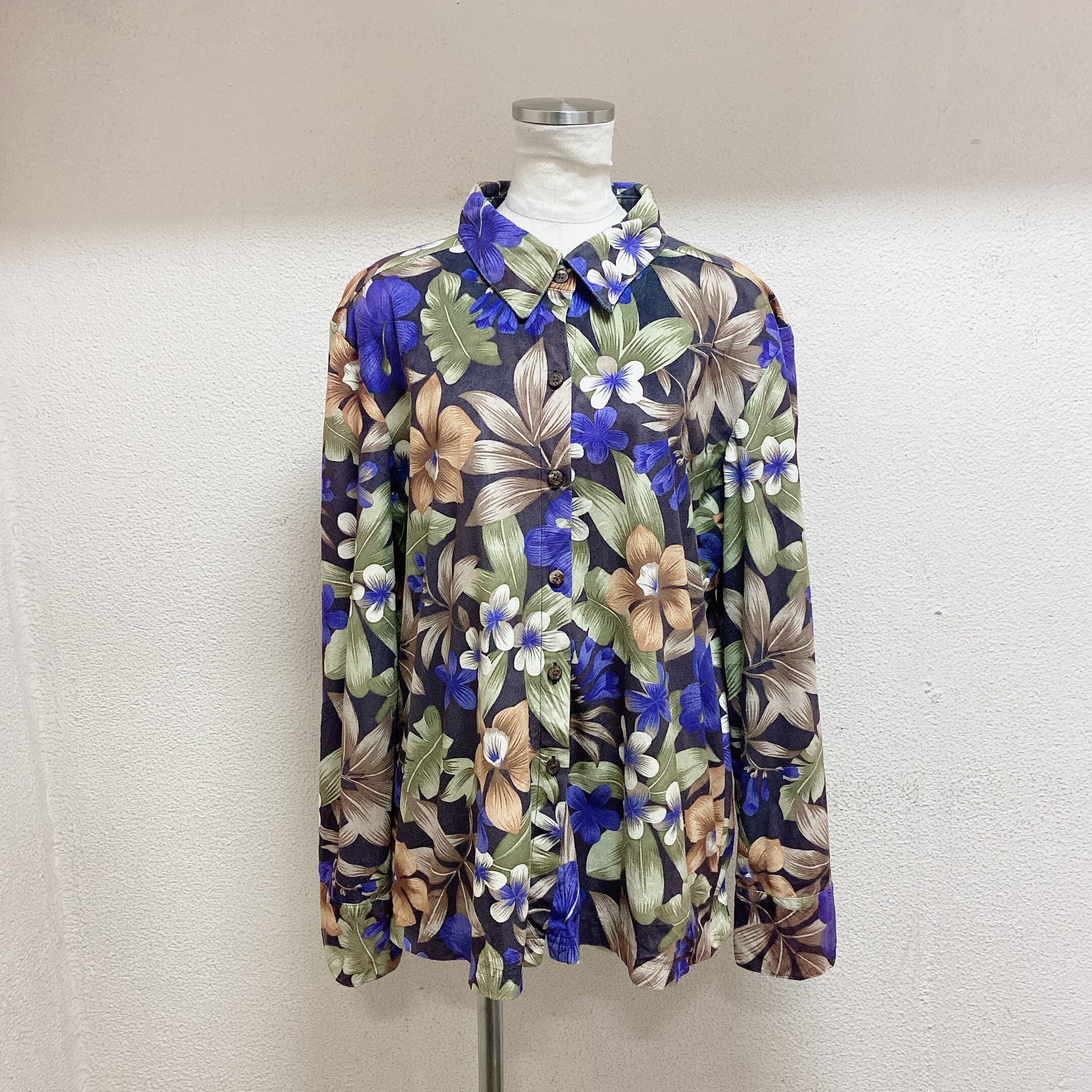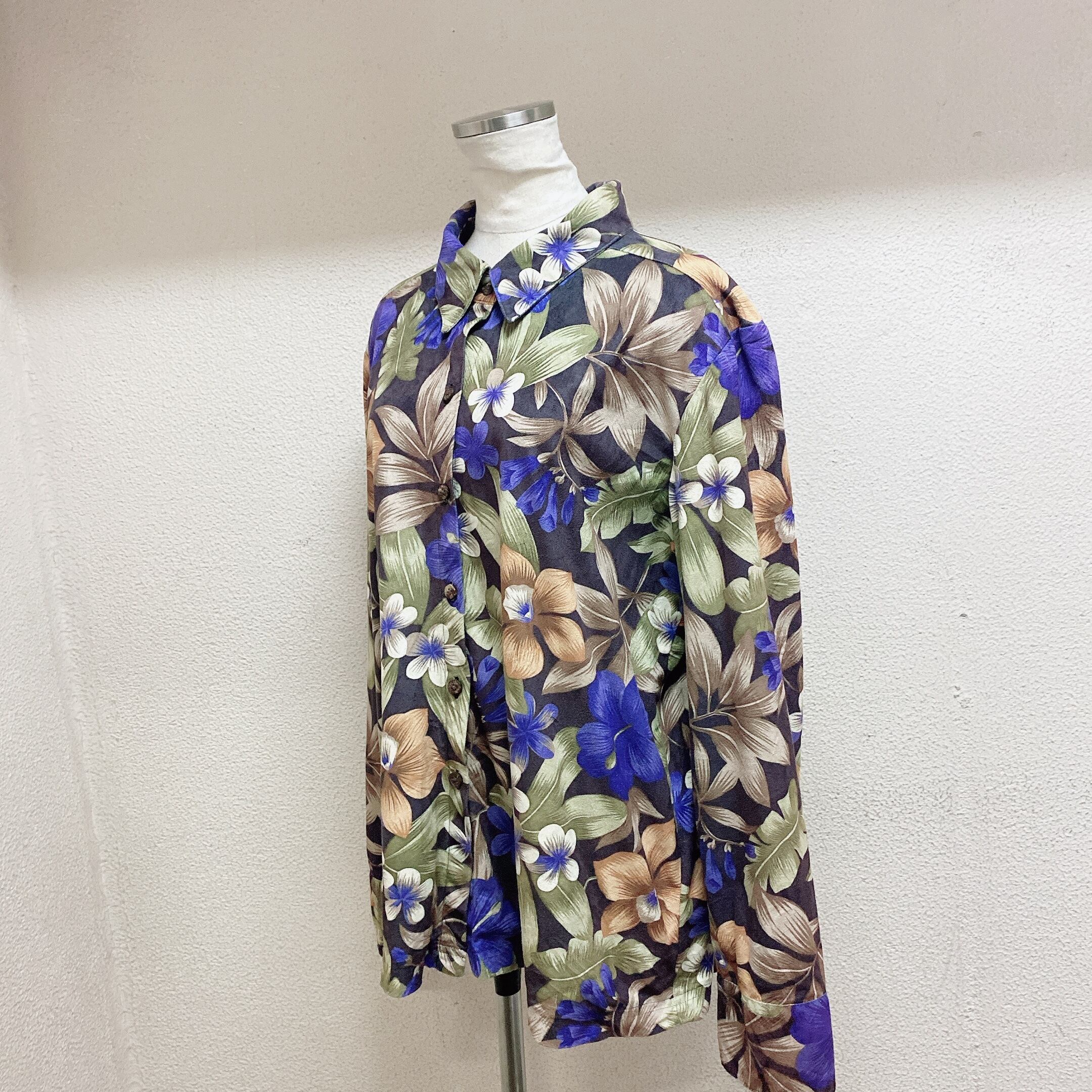 ヴィンテージ 長袖シャツ 焦げ茶 青 花柄 vintage shirt