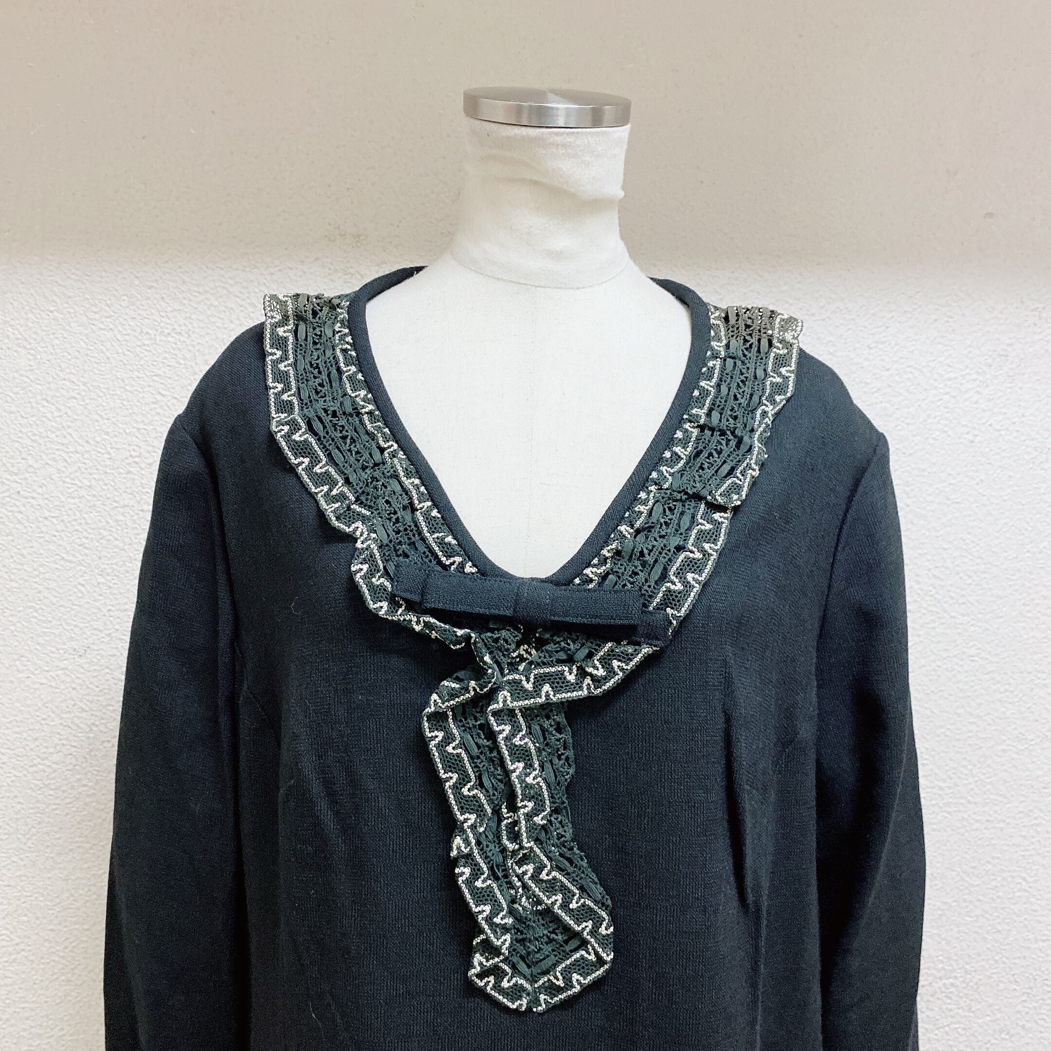ヴィンテージ 長袖ワンピース 黒 麻 vintage onepiece