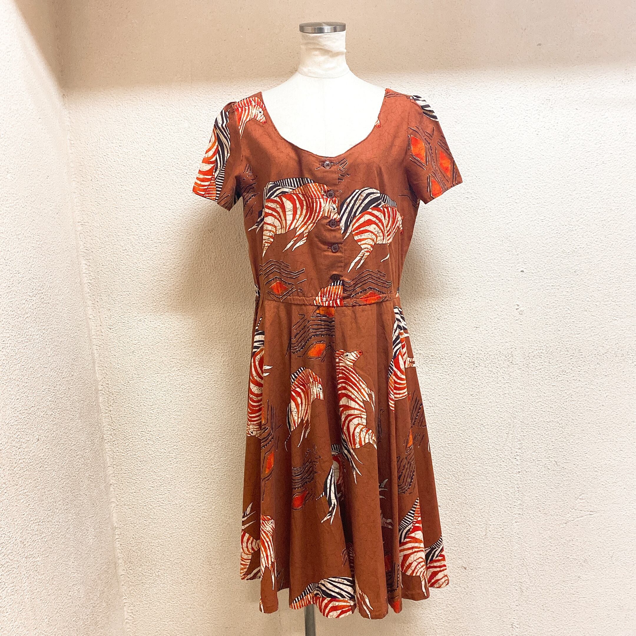 ヴィンテージ 半袖ワンピース 茶色 ゼブラ柄 vintage onepiece
