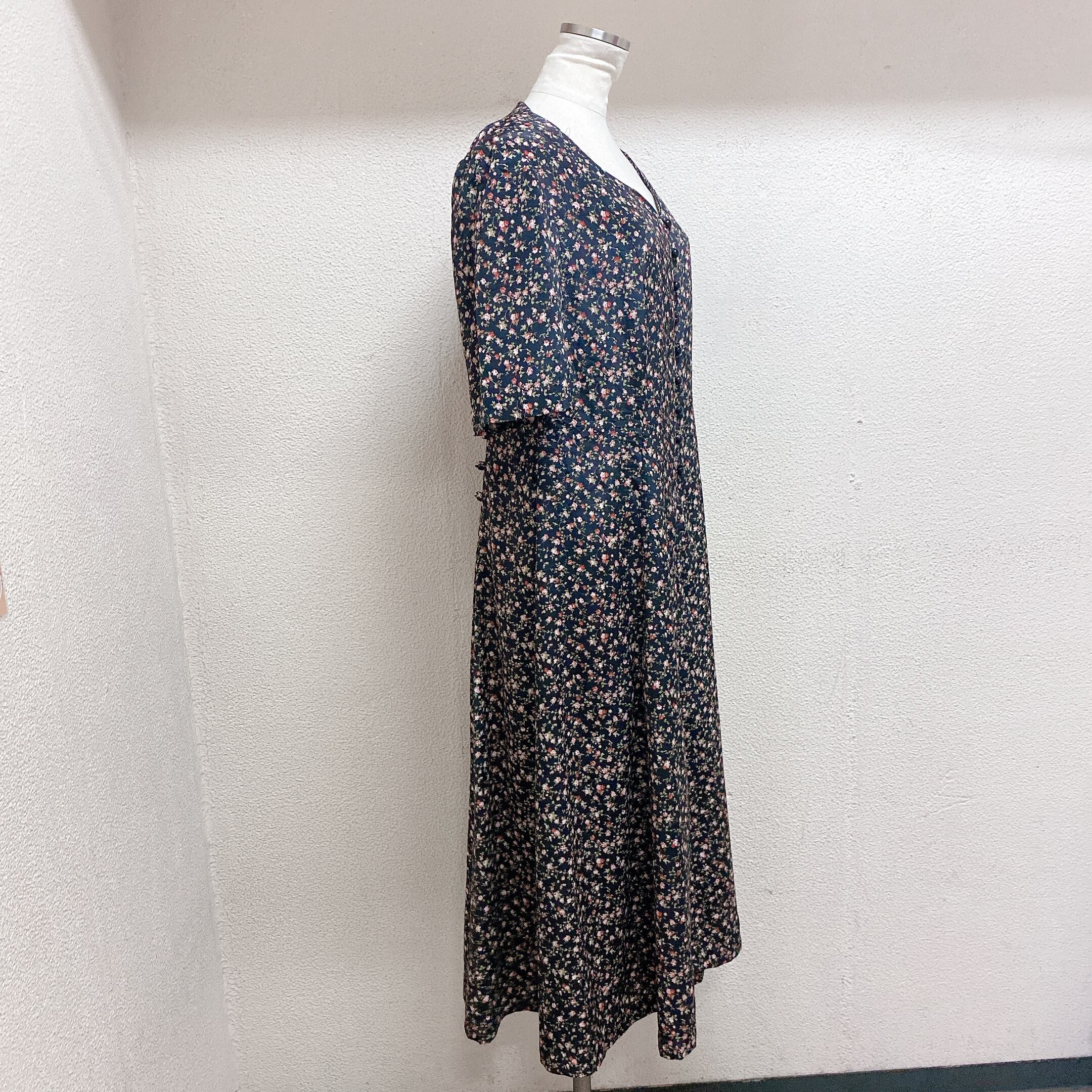 ヴィンテージ 半袖ワンピース 黒 小花柄 vintage onepiece
