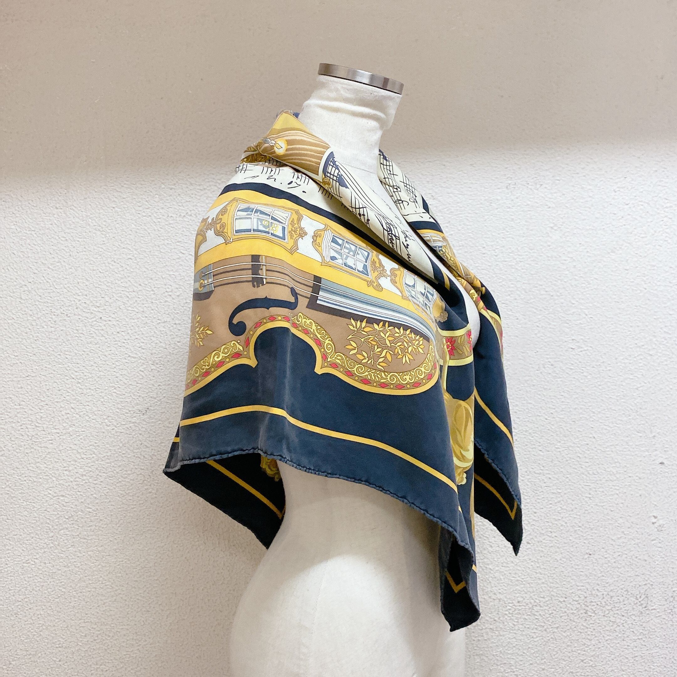 エルメス スカーフ 濃紺色 シルク 楽譜柄 HERMÈS