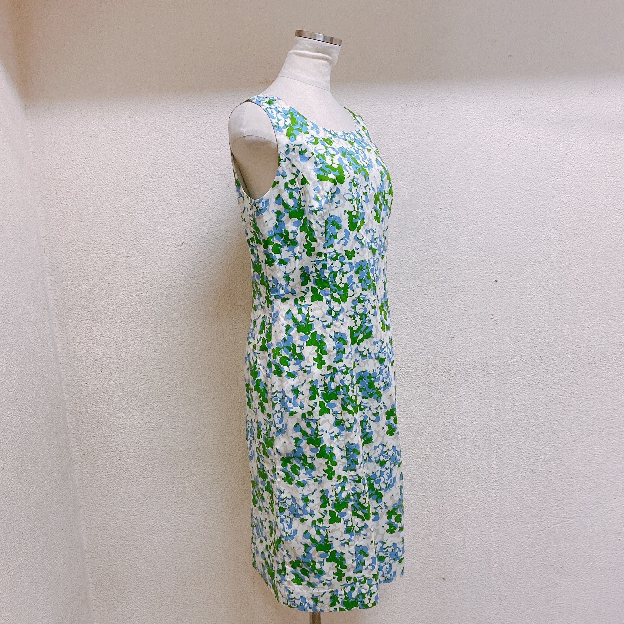 ブルックスブラザーズ ノースリーブワンピース 白 緑 水色 花柄 BROOKS BROTHERS