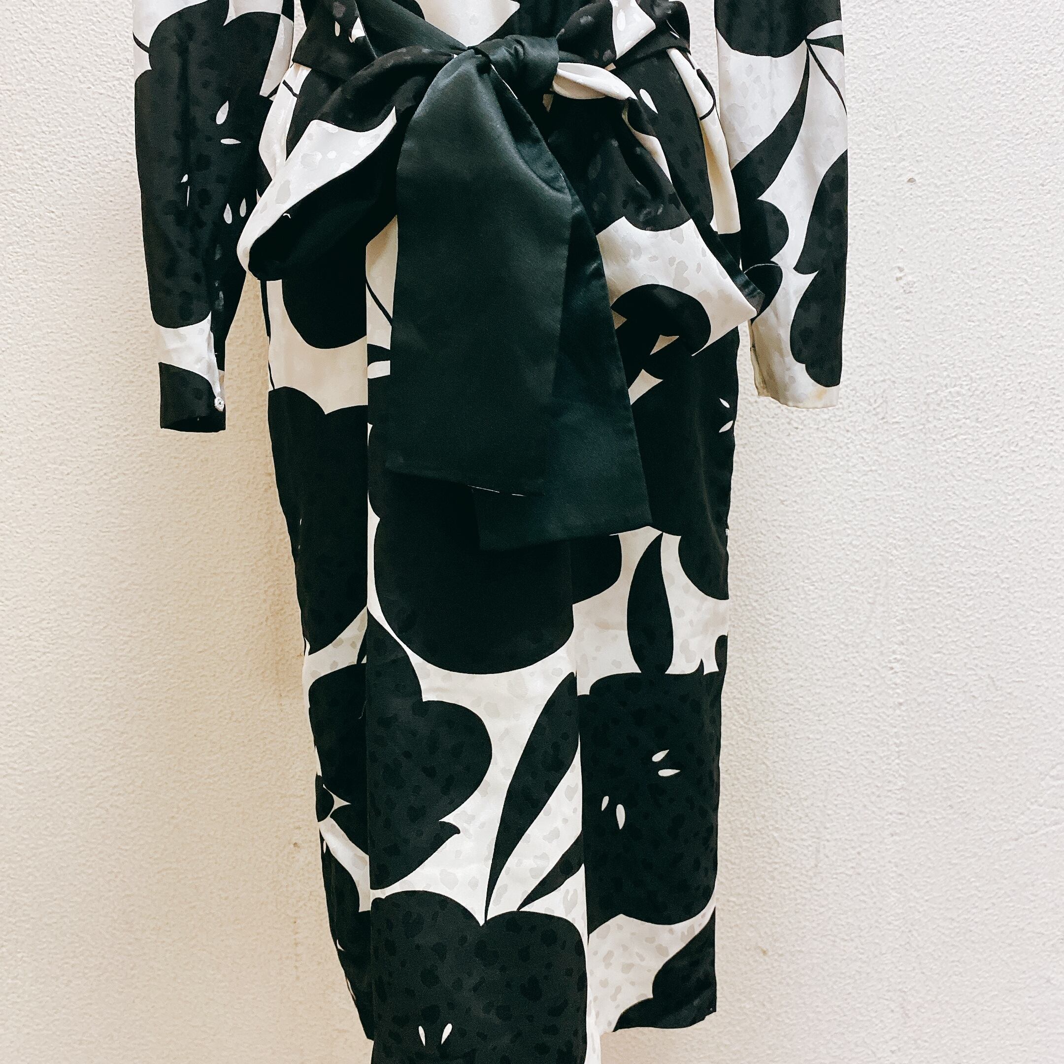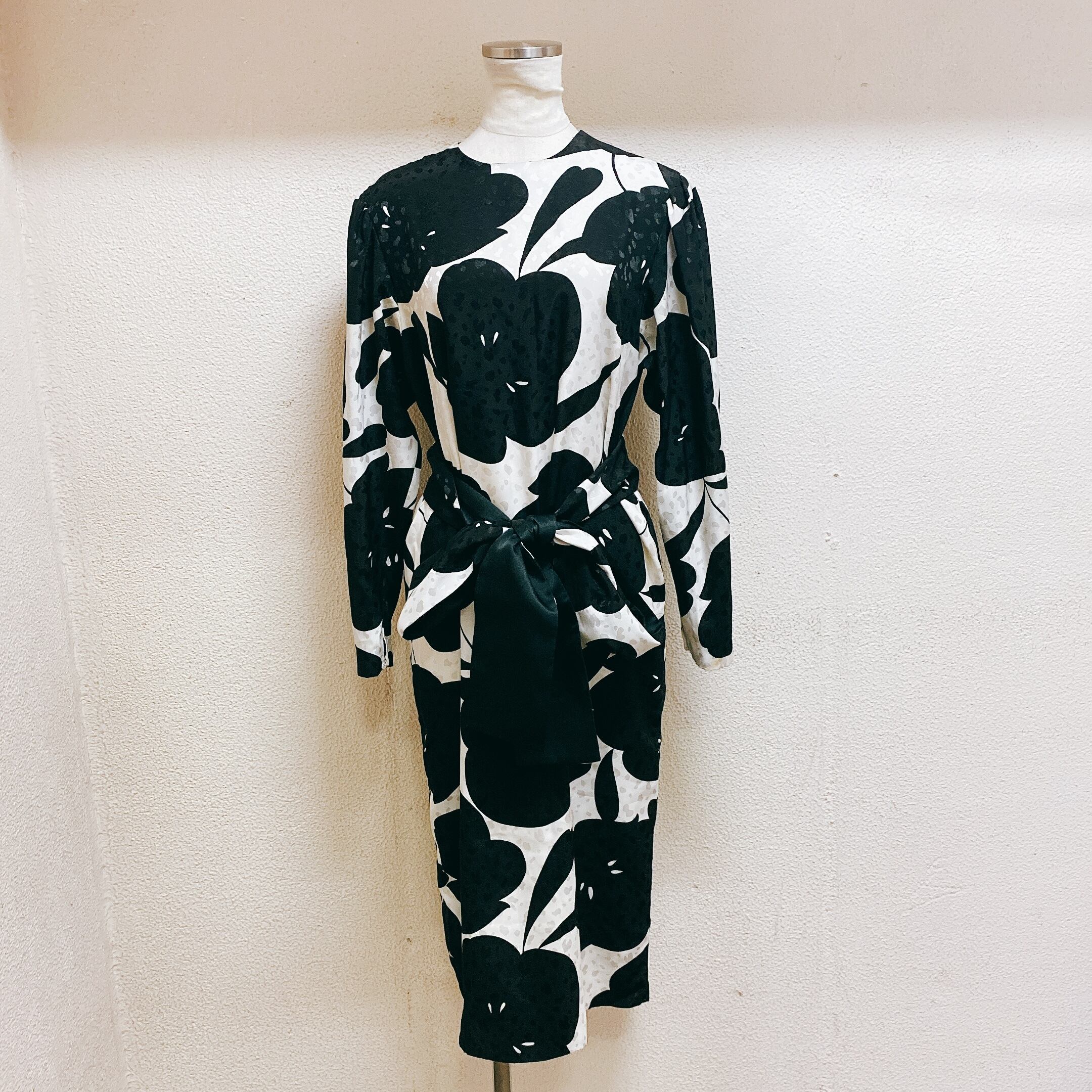 ハナエモリ 長袖ワンピース 白 黒 花柄 HANAE MORI