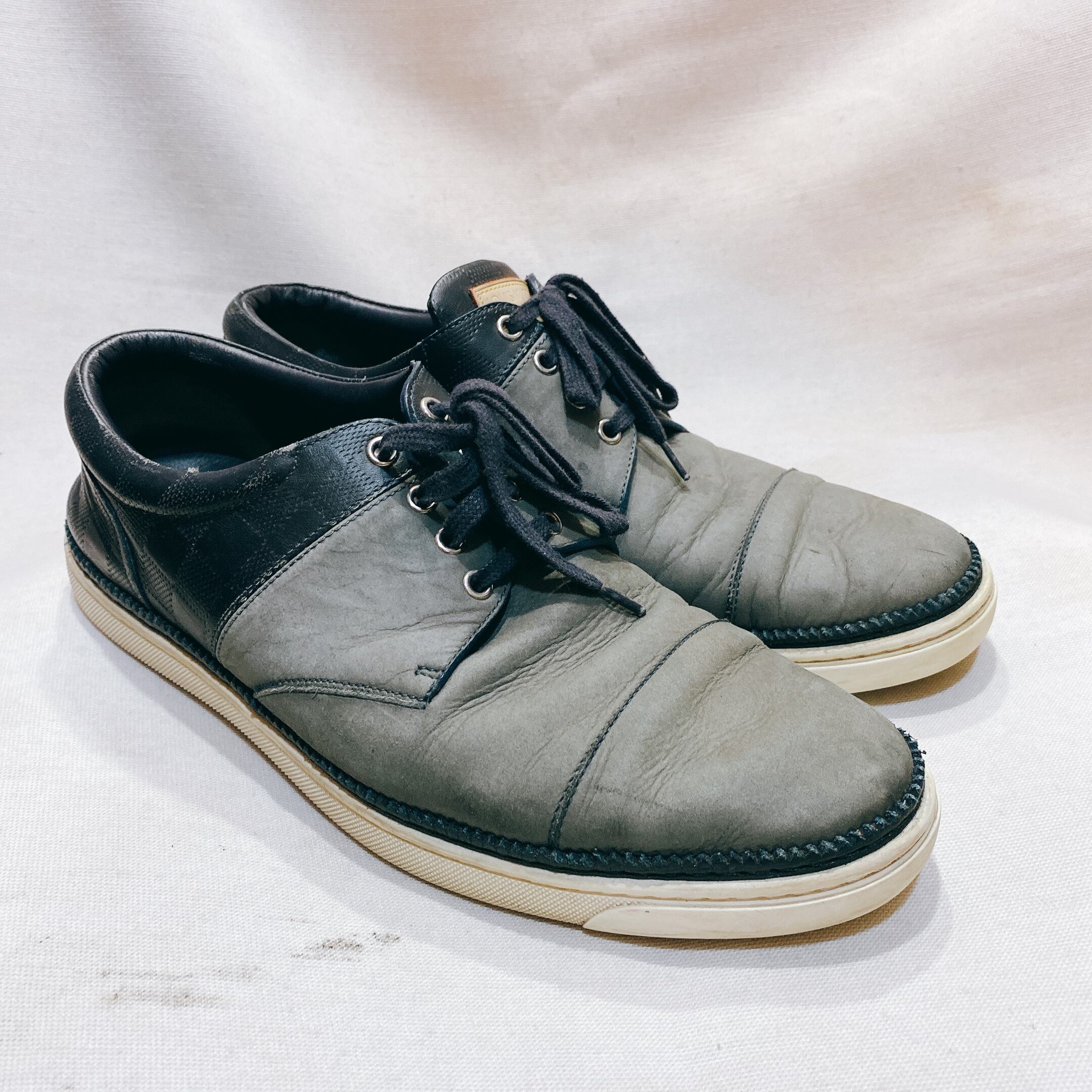 ルイヴィトン スニーカー レザーシューズ カーキ 紺 LOUIS VUITTON