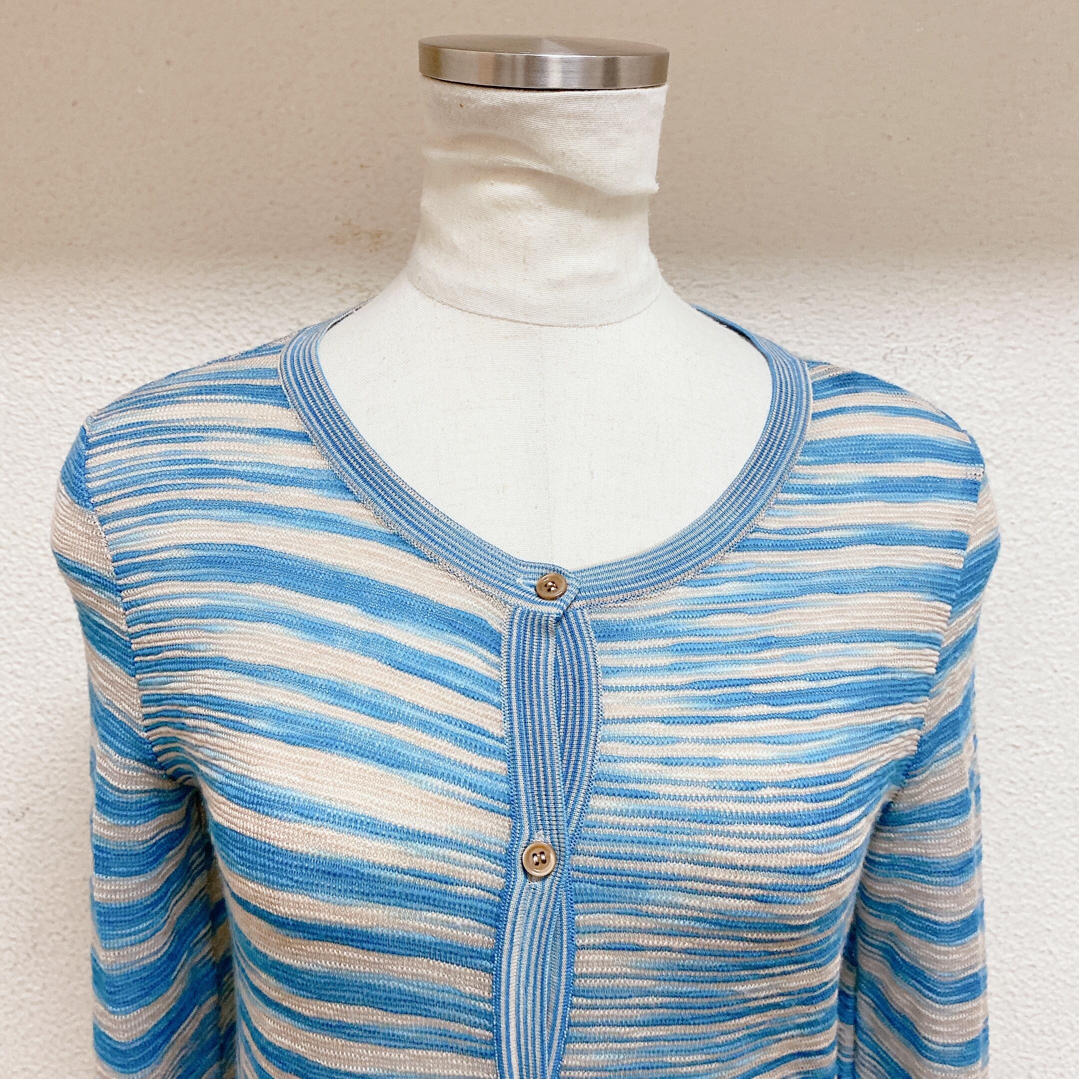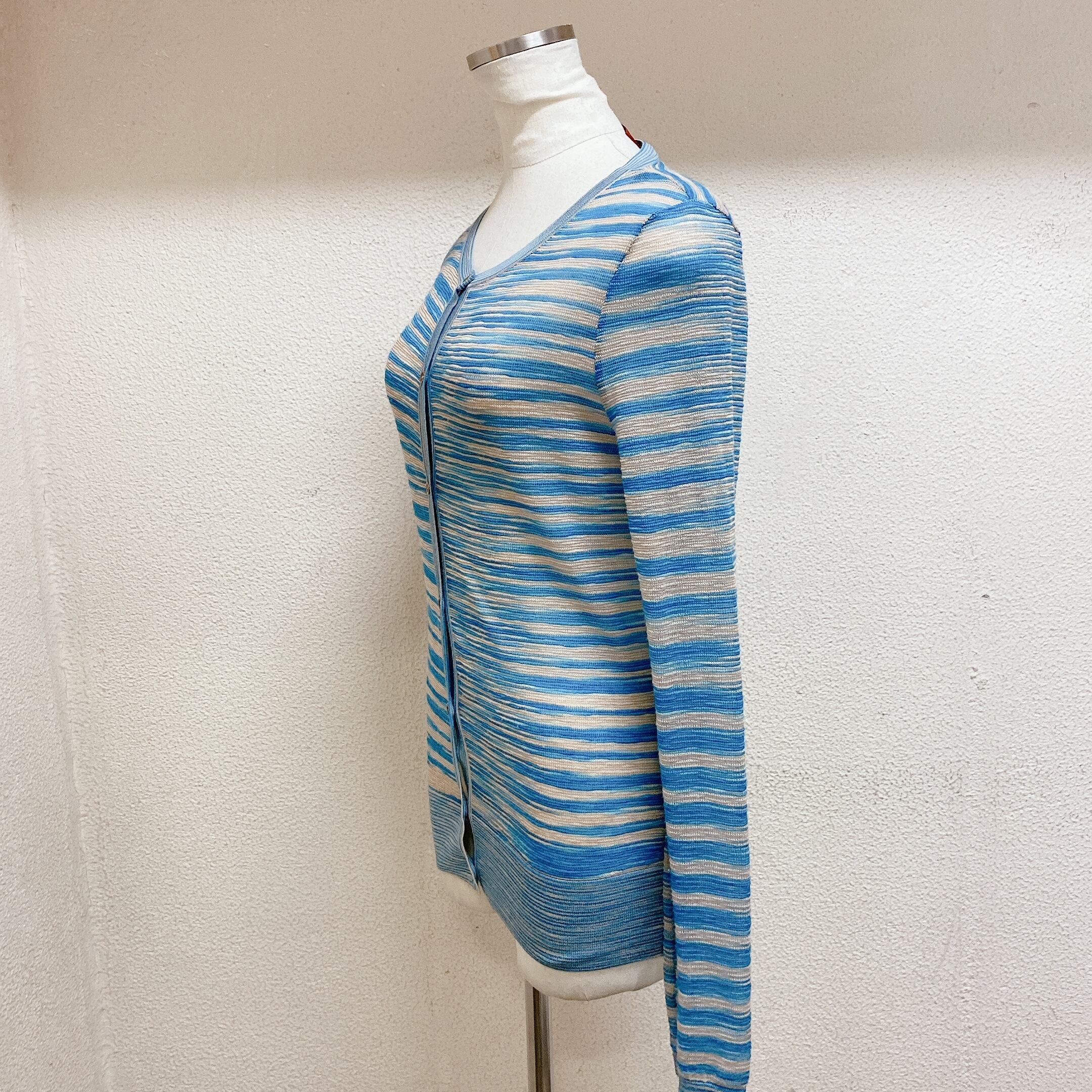 ミッソーニ カーディガン 水色 グレー色 ボーダー MISSONI