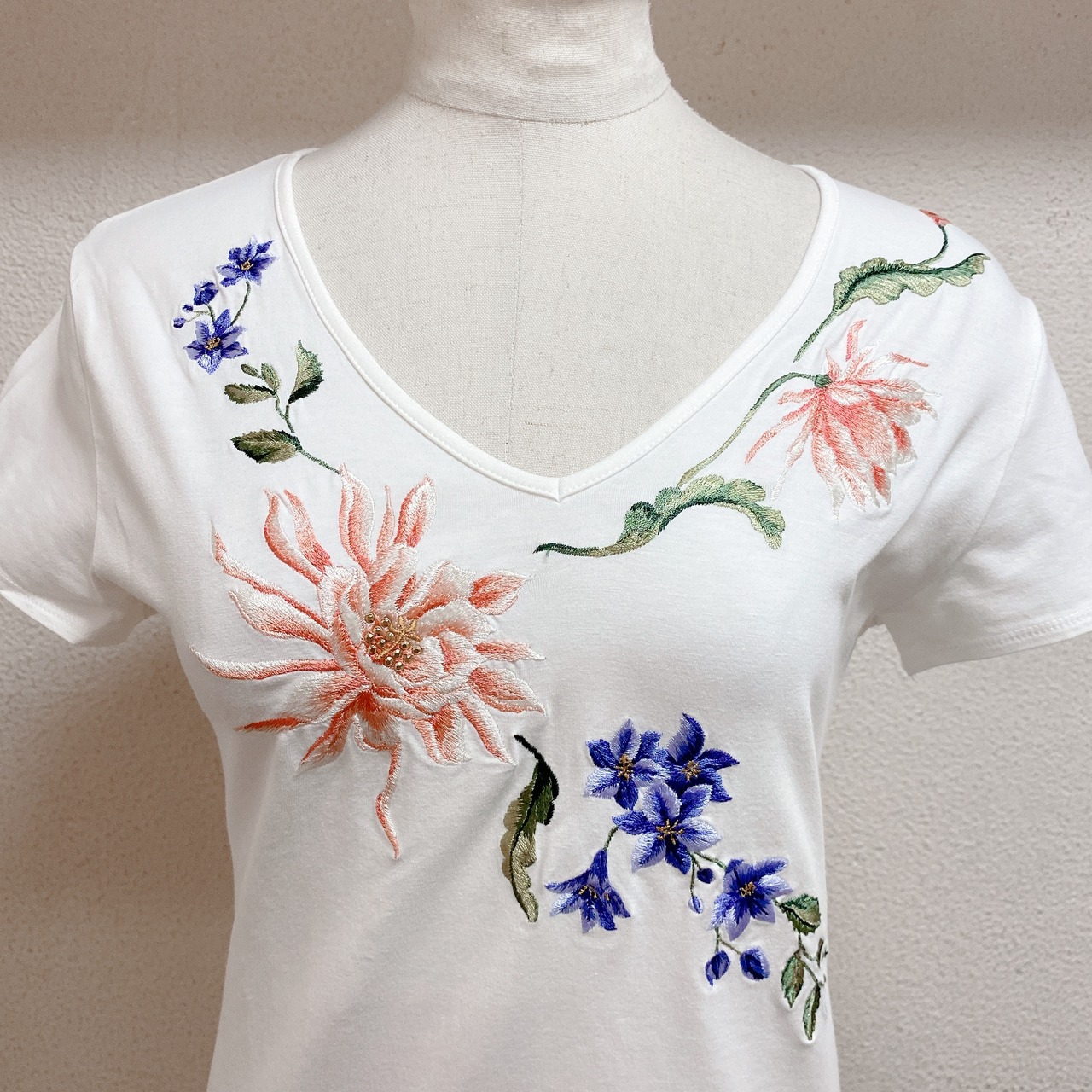 ヴィヴィアンタム 半袖トップス 白 花柄刺繍 VIVIENNE TAM
