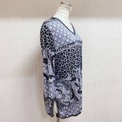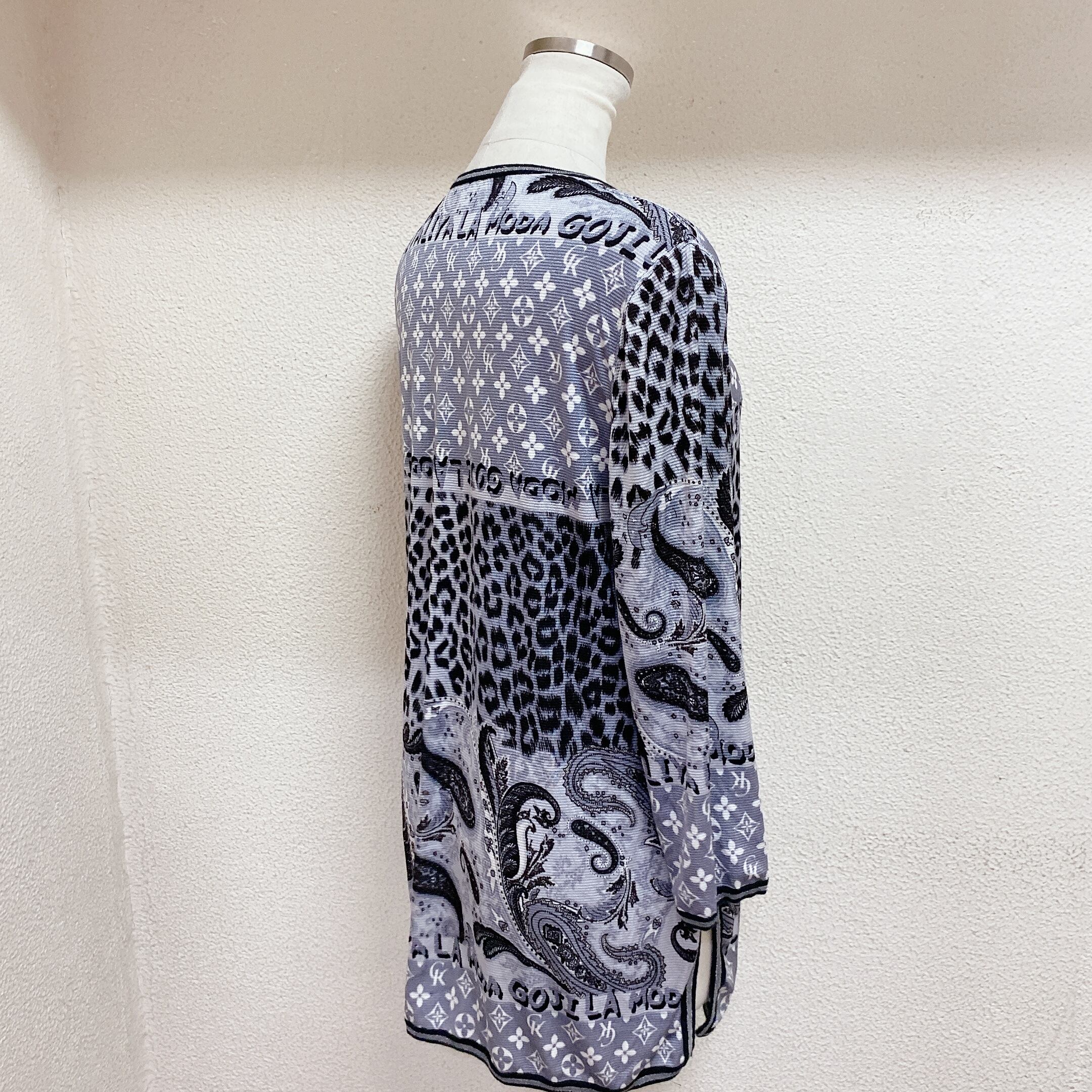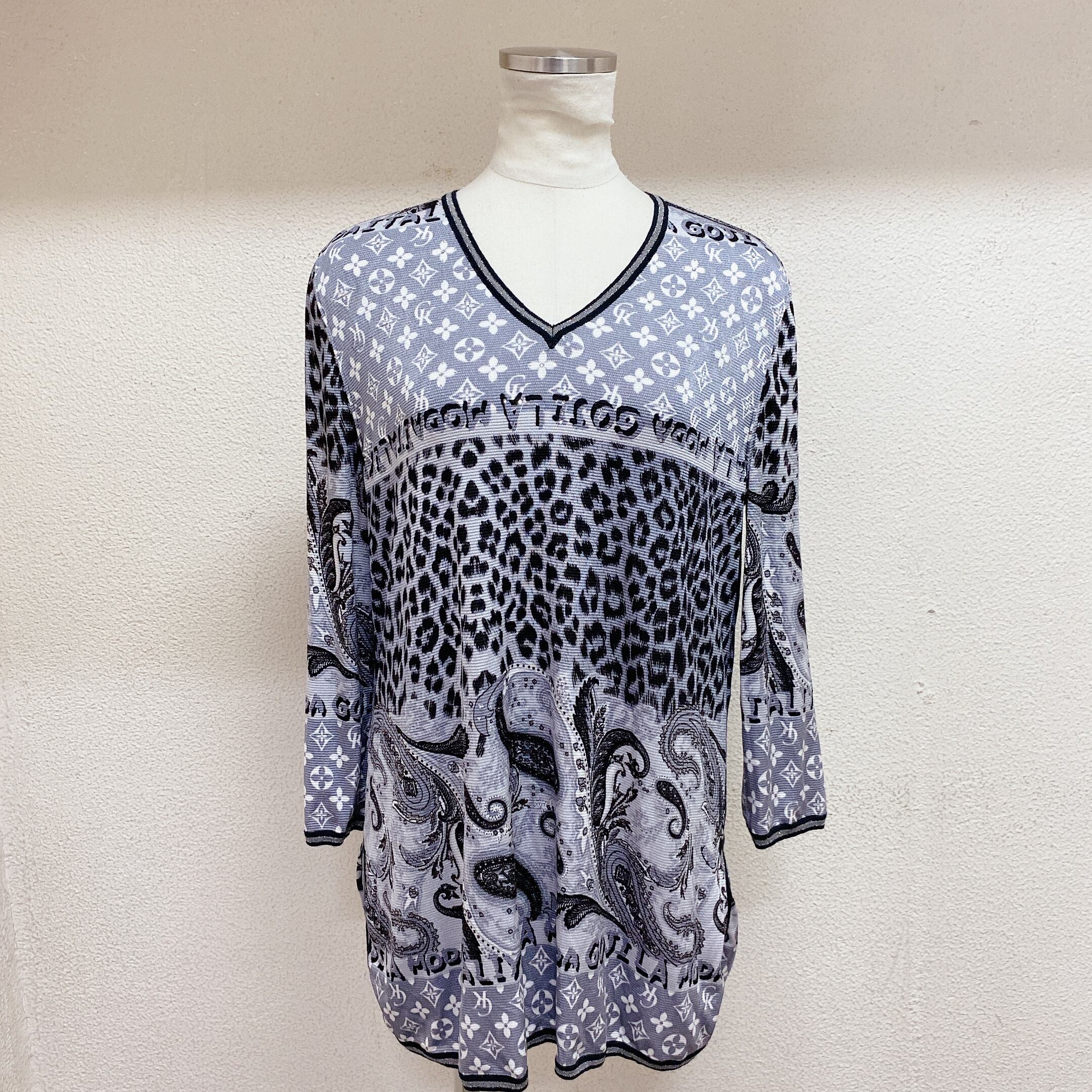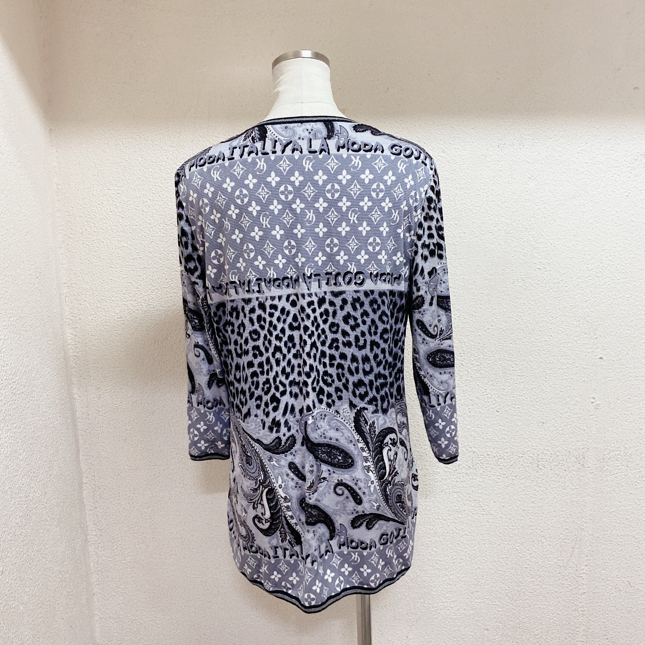 伊太利屋 長袖トップス グレー色 ヒョウ柄 ペイズリー柄 美品