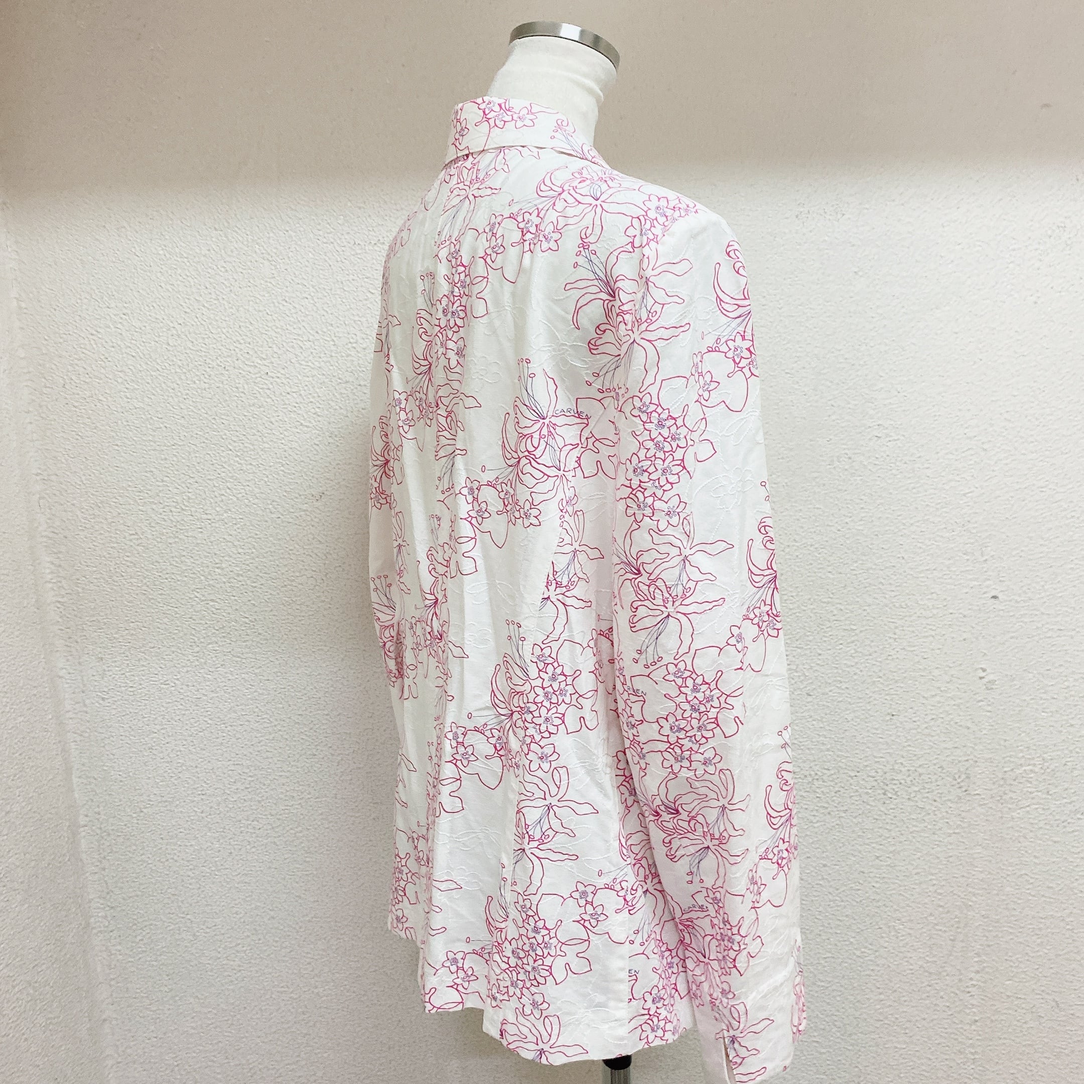 カルベン サマージャケット 白 ピンク 花柄 シルク CARVEN
