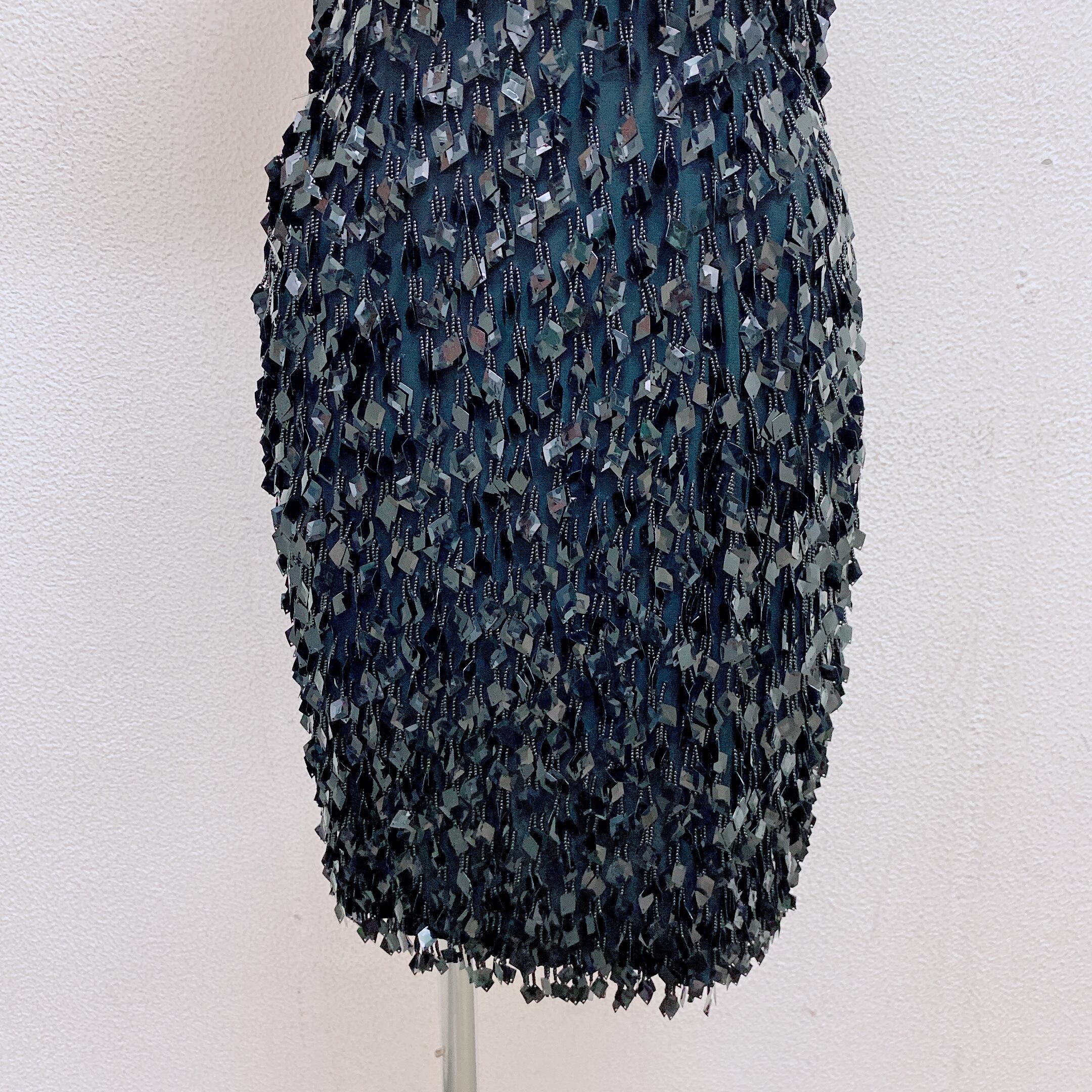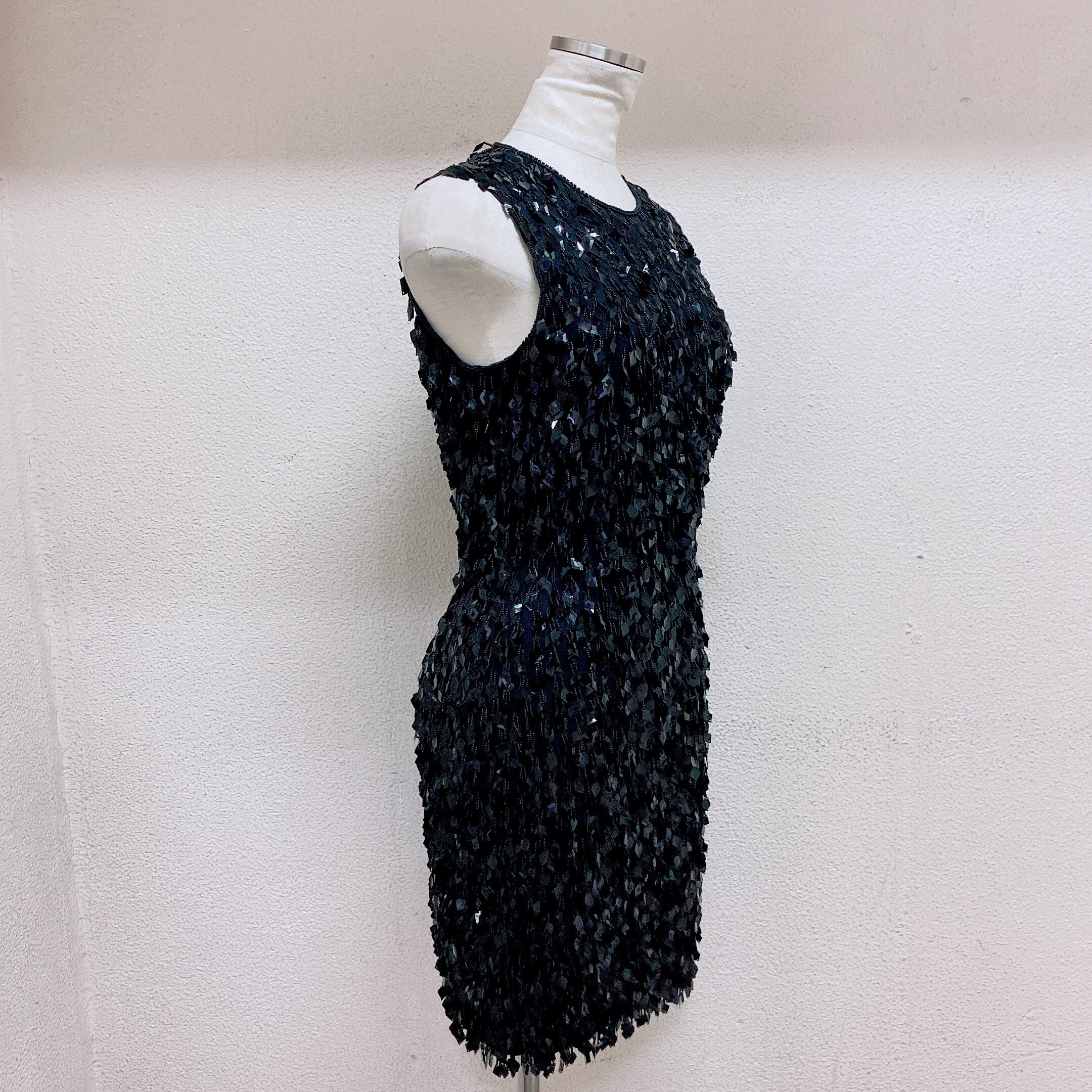 ダナキャラン ノースリーブワンピース 黒 スパンコール カクテルドレス DKNY