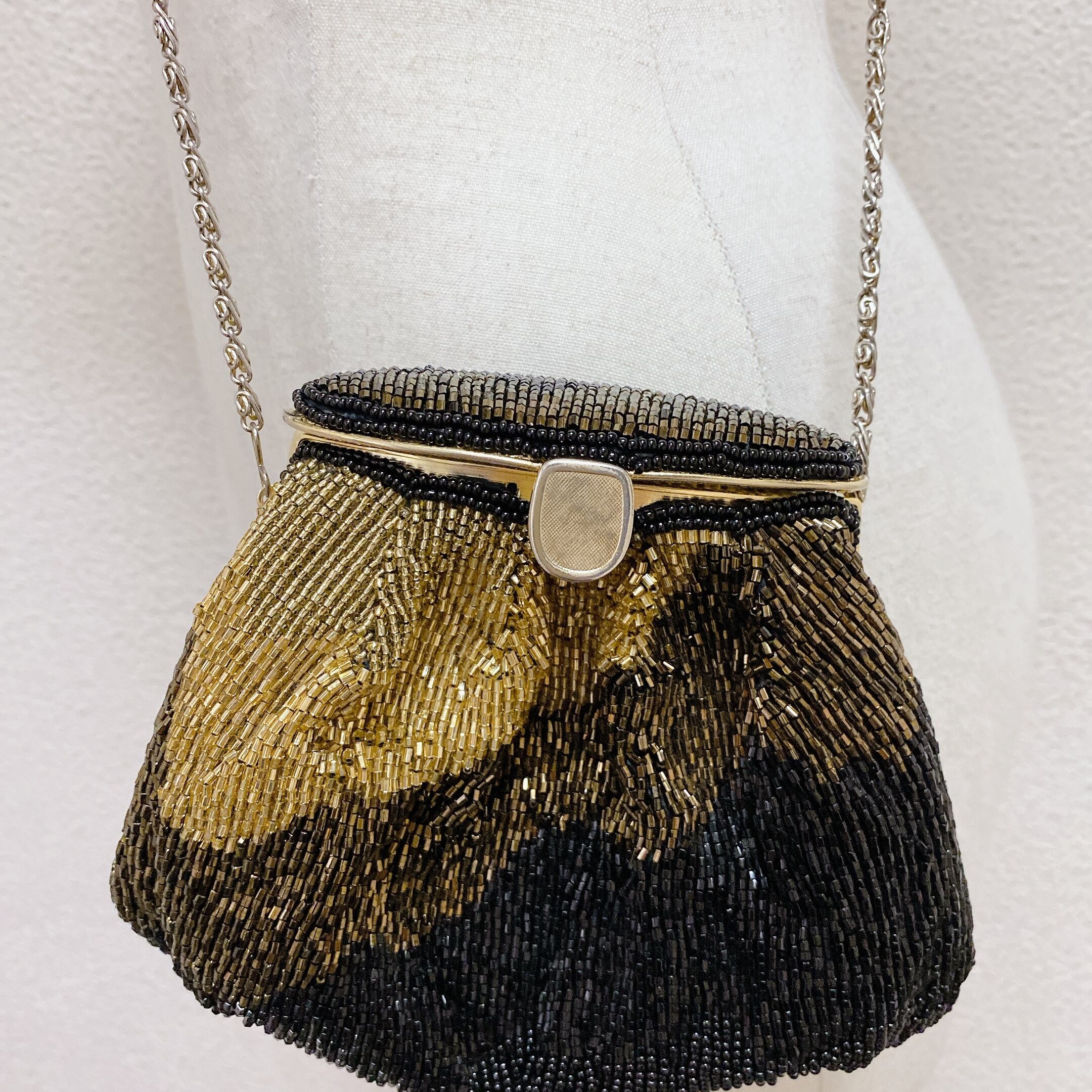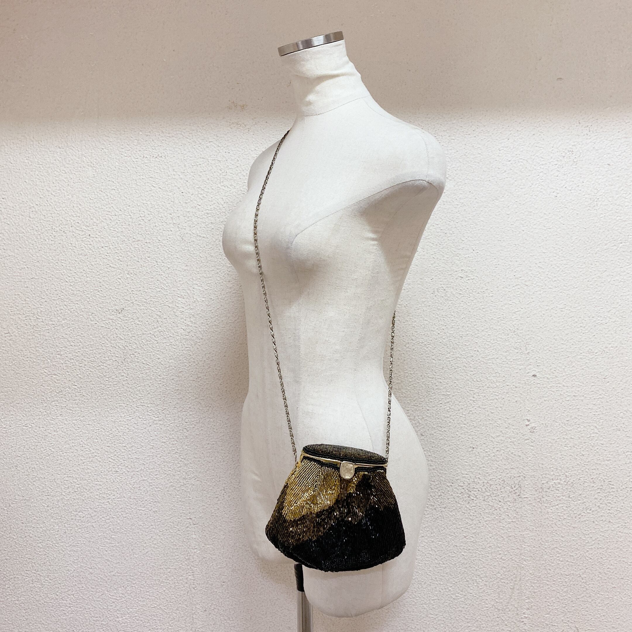 ヴィンテージ ビーズショルダーバッグ ゴールド 黒 vintage beads bags