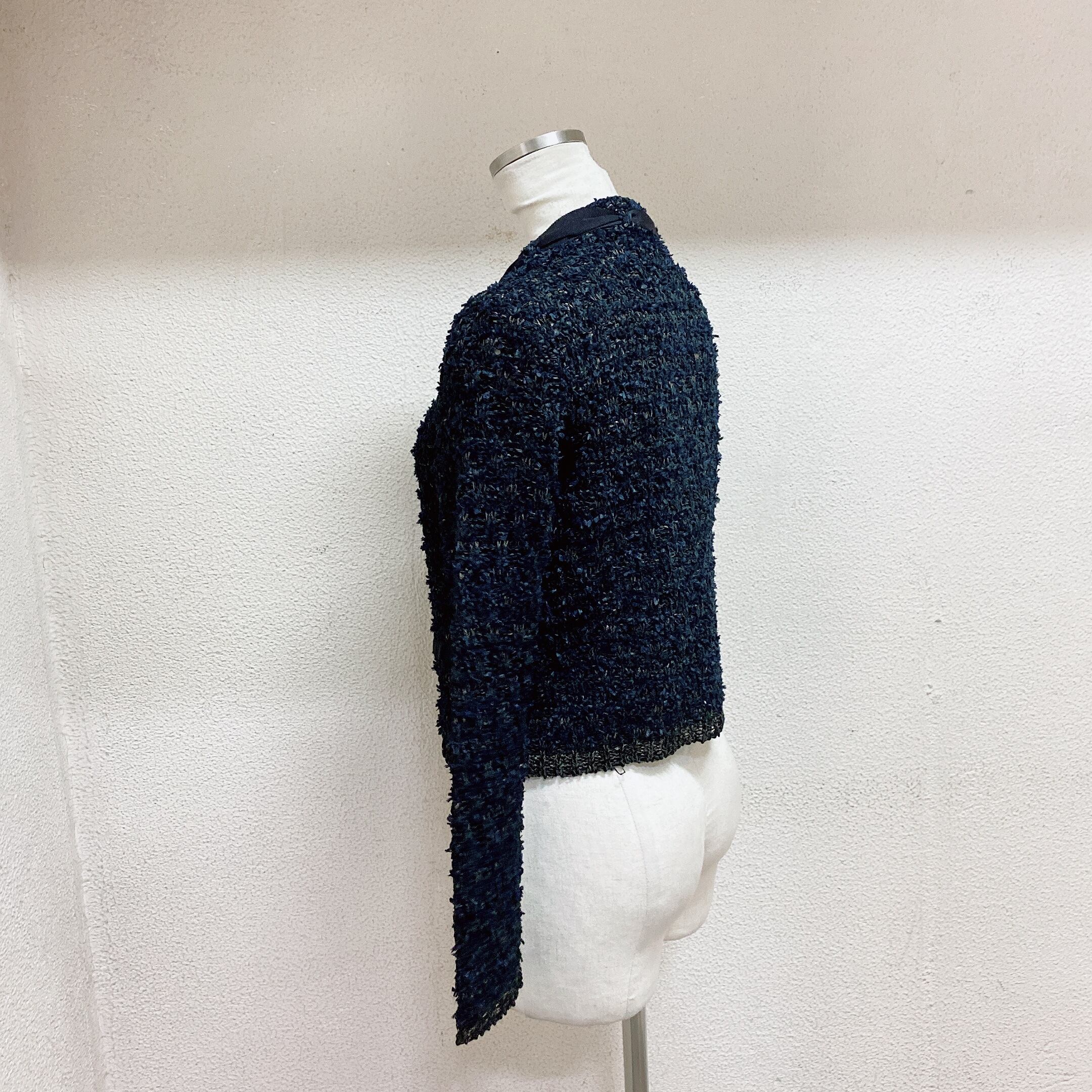 ランバン ジャケット 黒 濃紺色 ツィードジャケット LANVIN ノーカラージャケット