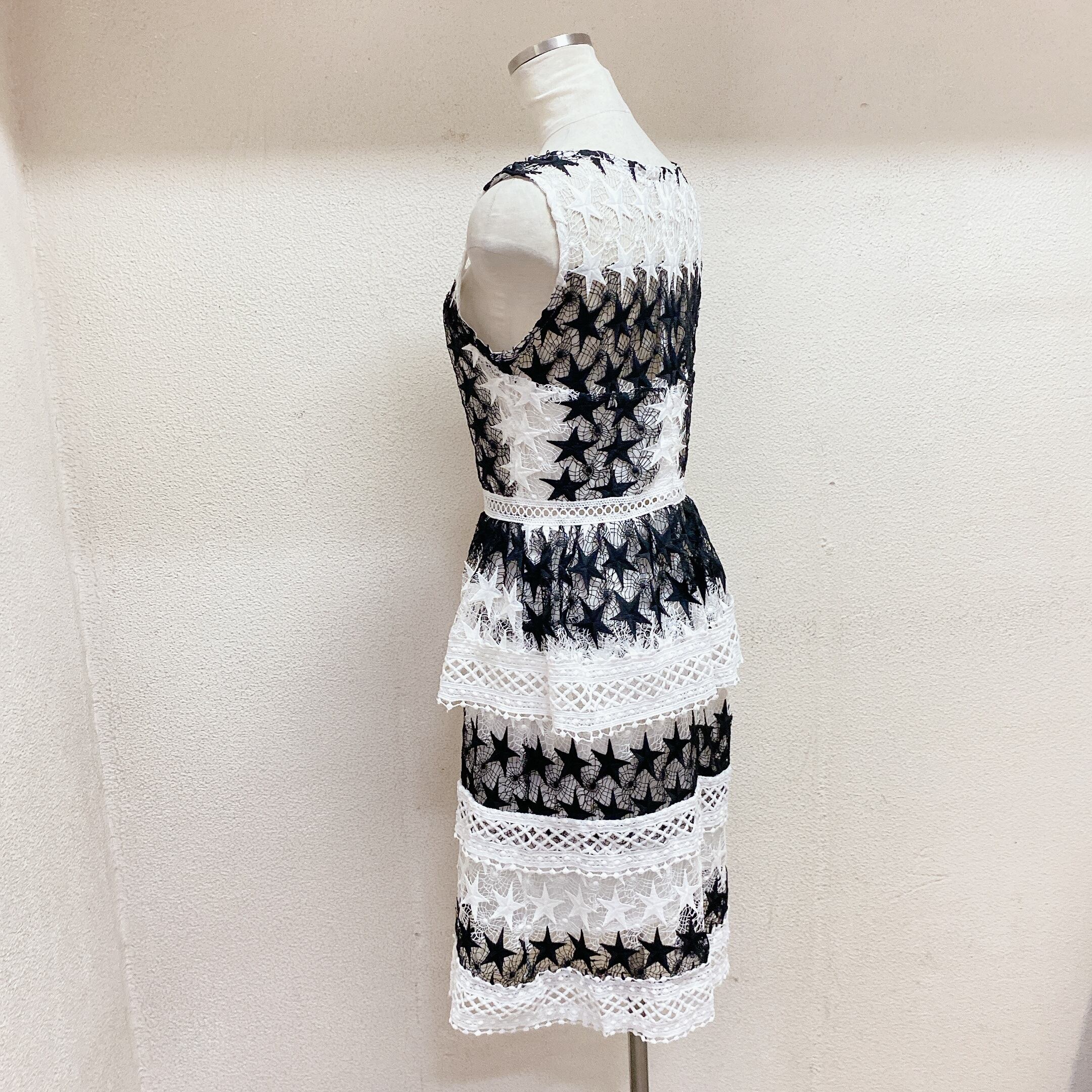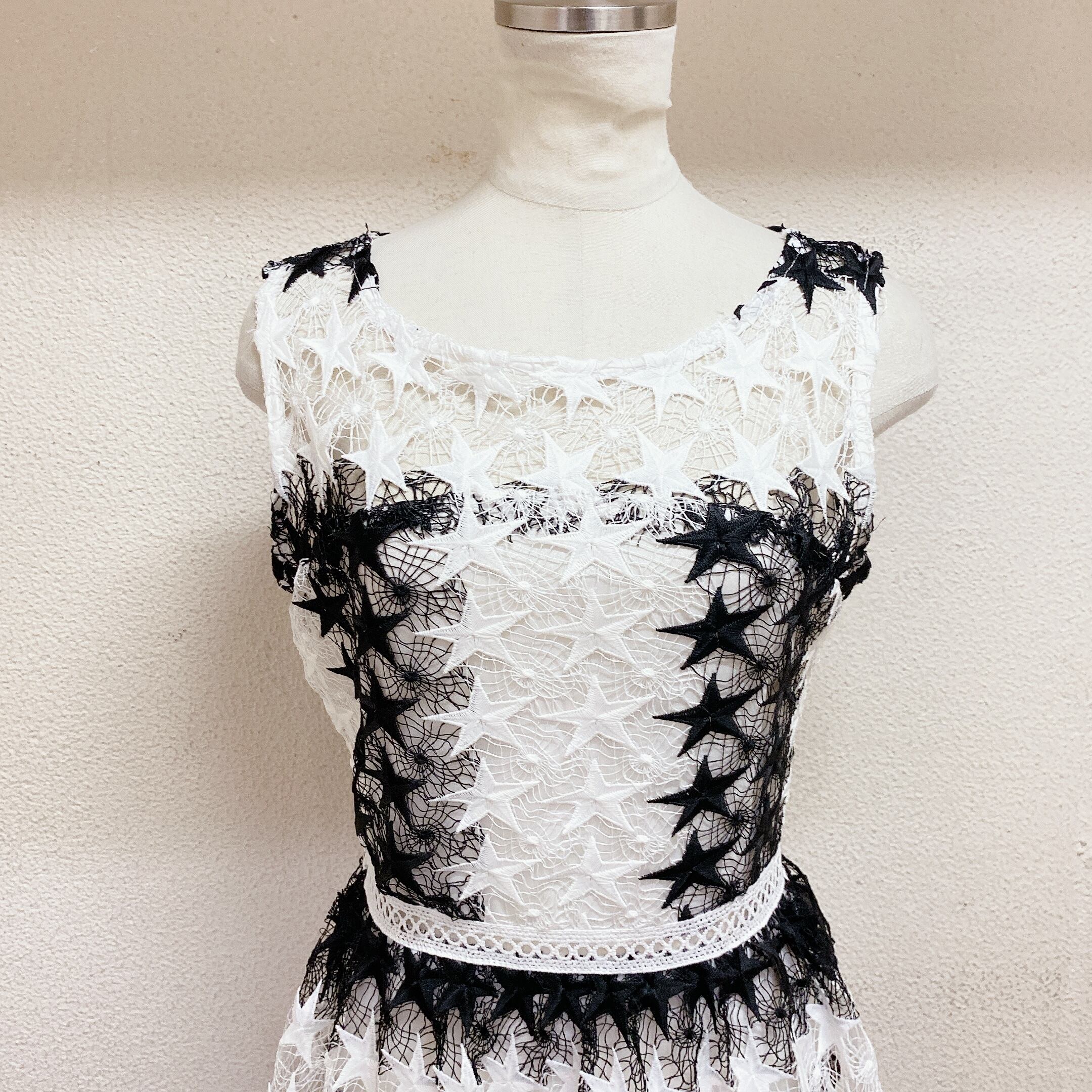 ヴィンテージ ノースリーブワンピース 白 黒 星柄 vintage onepiece