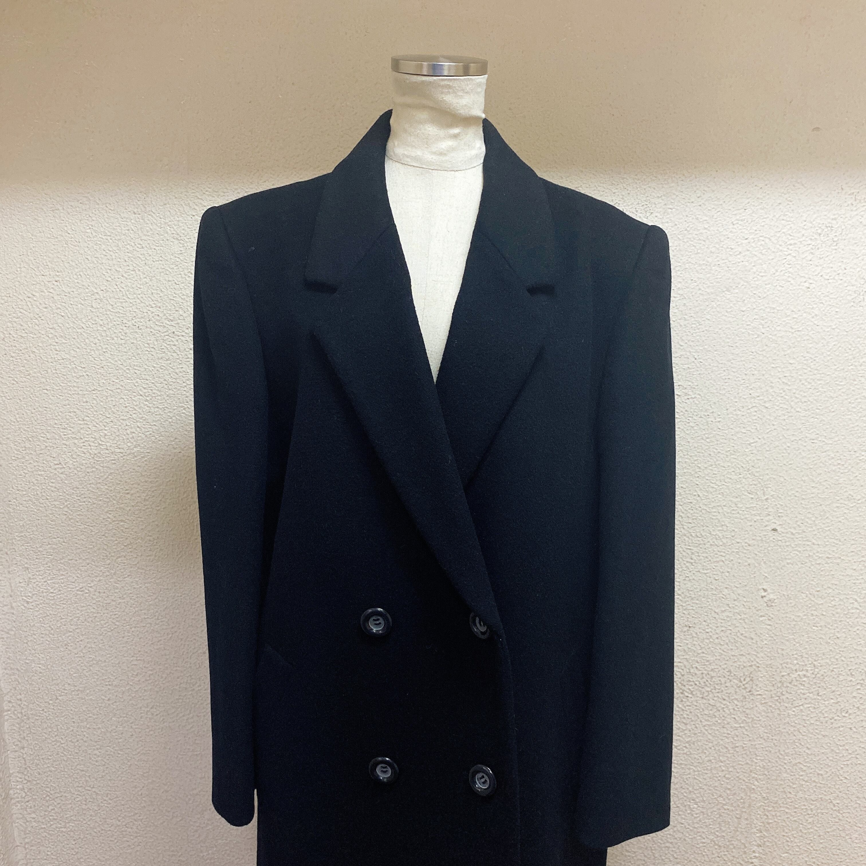 キャラット ウールコート 黒 ダブル カシミア混 Carat 美品