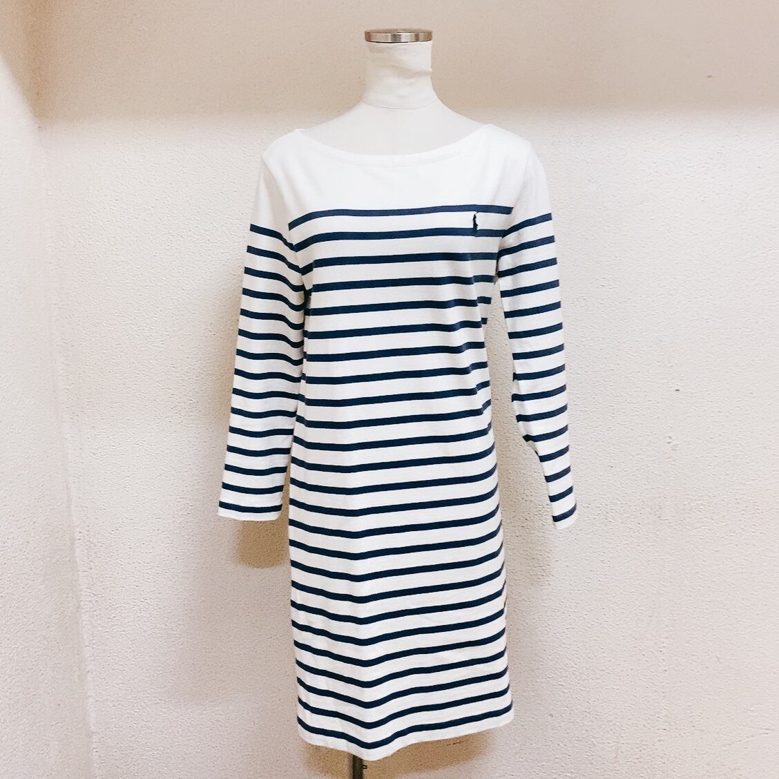 ラルフローレン 長袖ワンピース 白 紺 ボーダー柄 RALPH LAUREN 美品