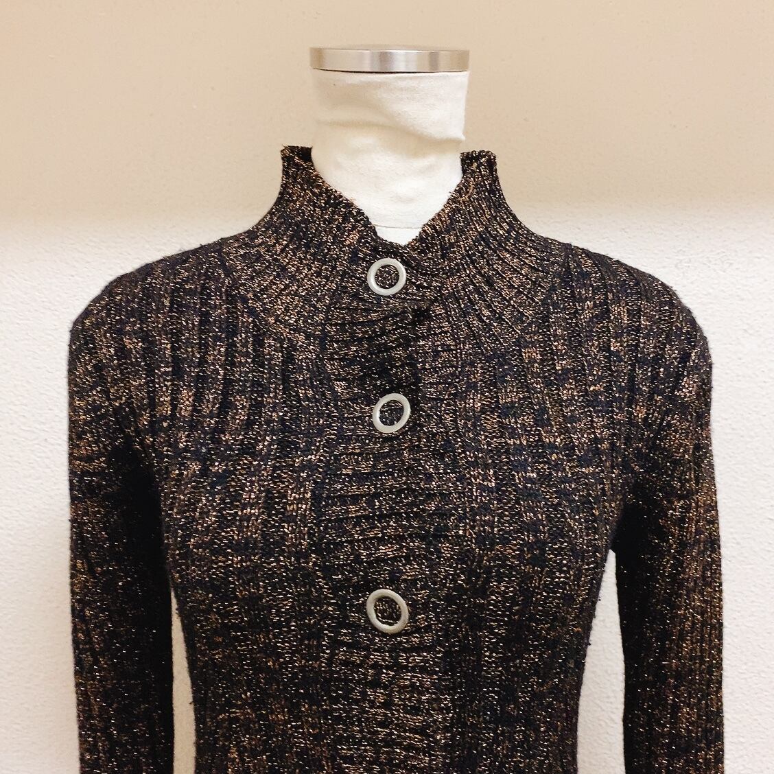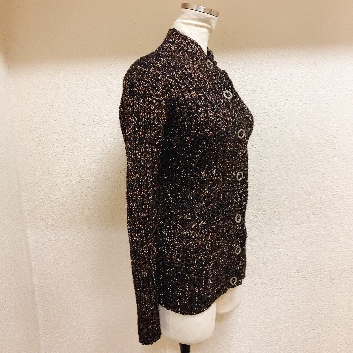 ヴィンテージ ニットカーディガン 黒 茶 ラメ糸 vintage knit cardigan