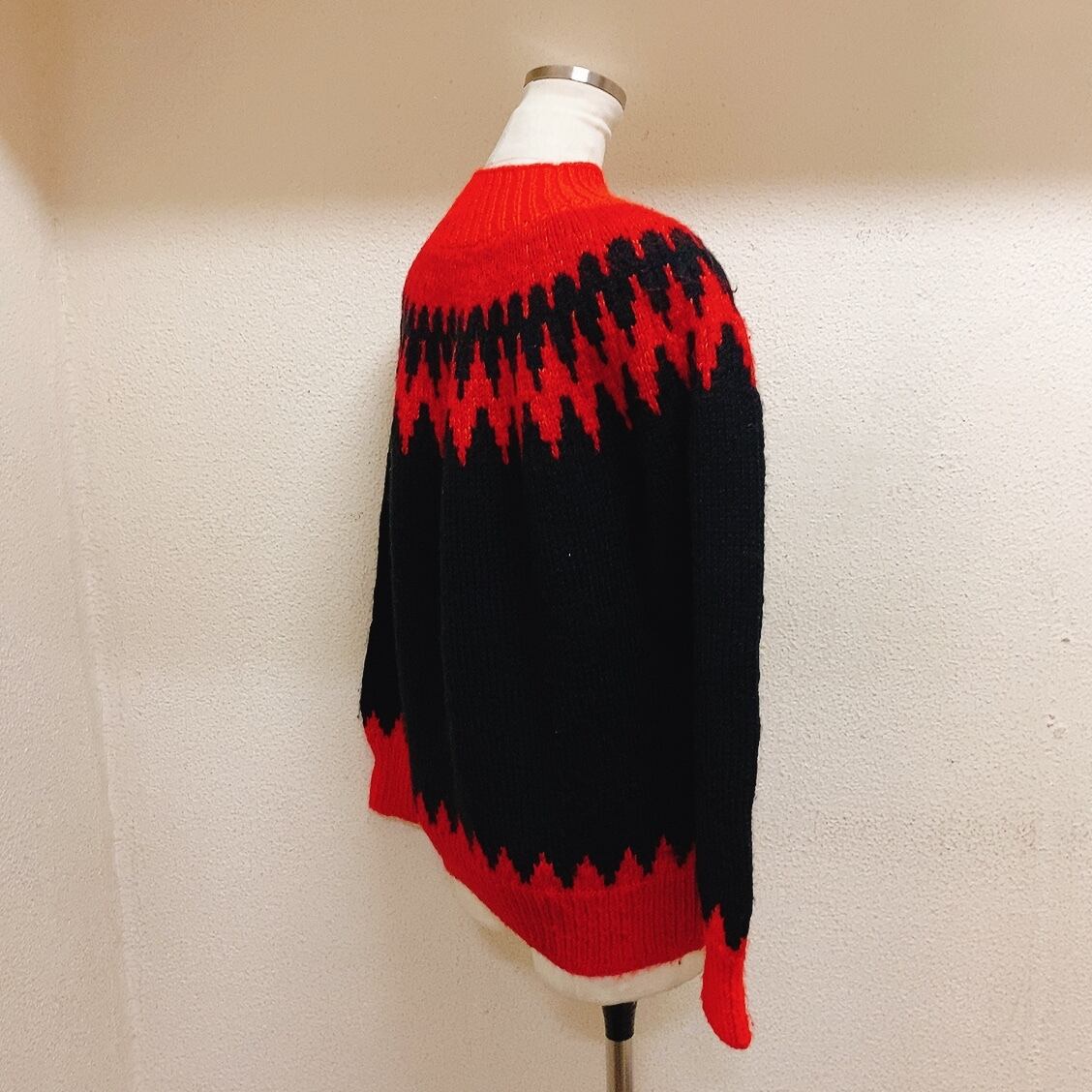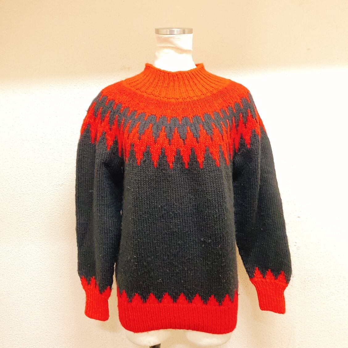 ヴィンテージ 長袖ニット 黒 赤 ウール vintage knit