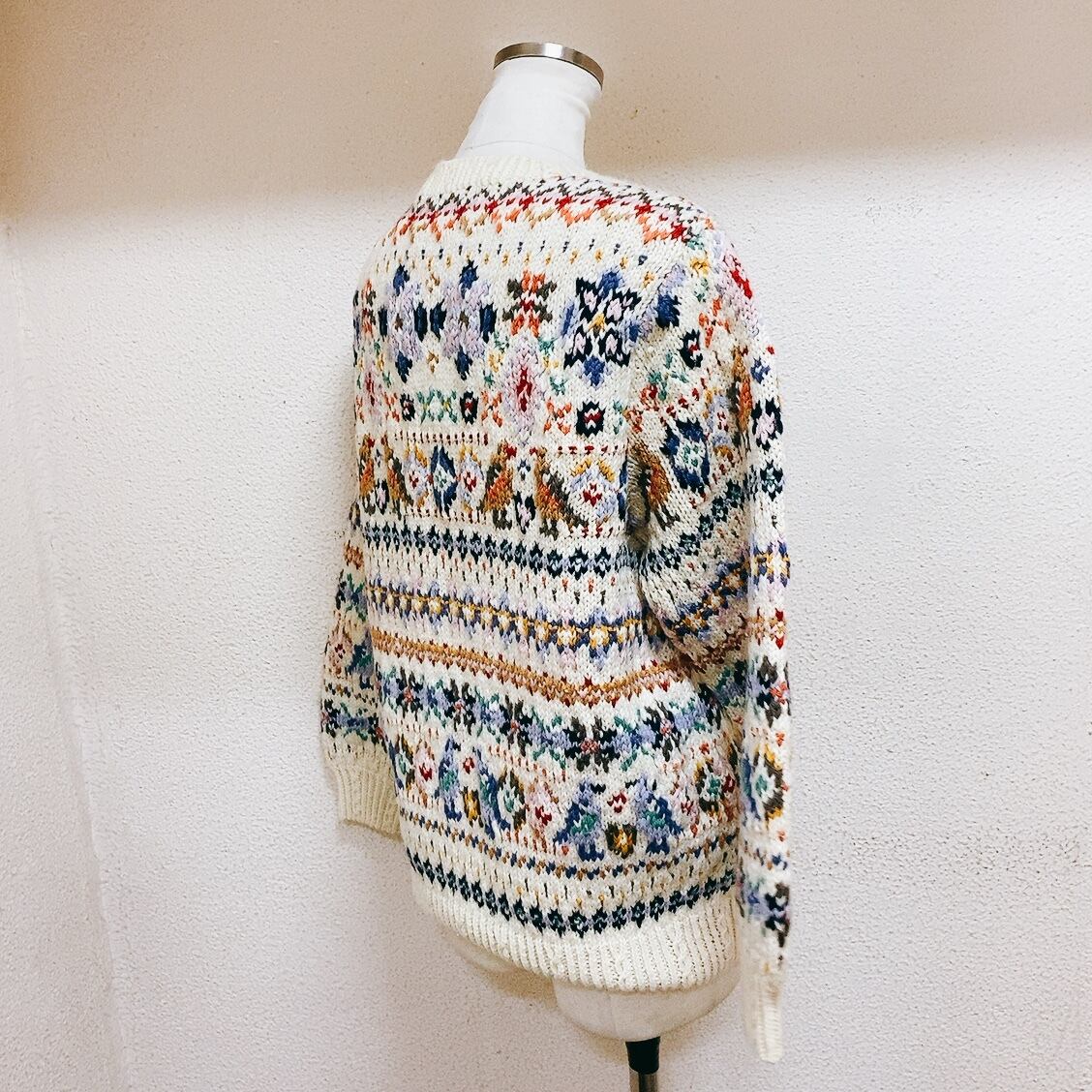 ヴィンテージ ニットカーディガン 白 花柄 鳥柄 vintage knit cardigan