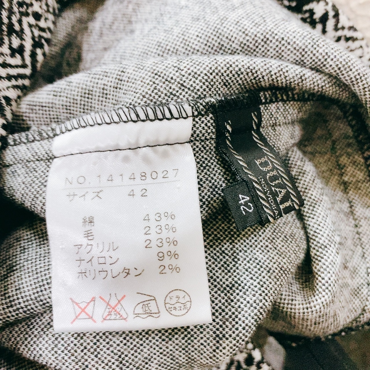 ● 素材・ 綿42%、ウール23%、アクリル23%、ナイロン9%、ポリウレタン2%