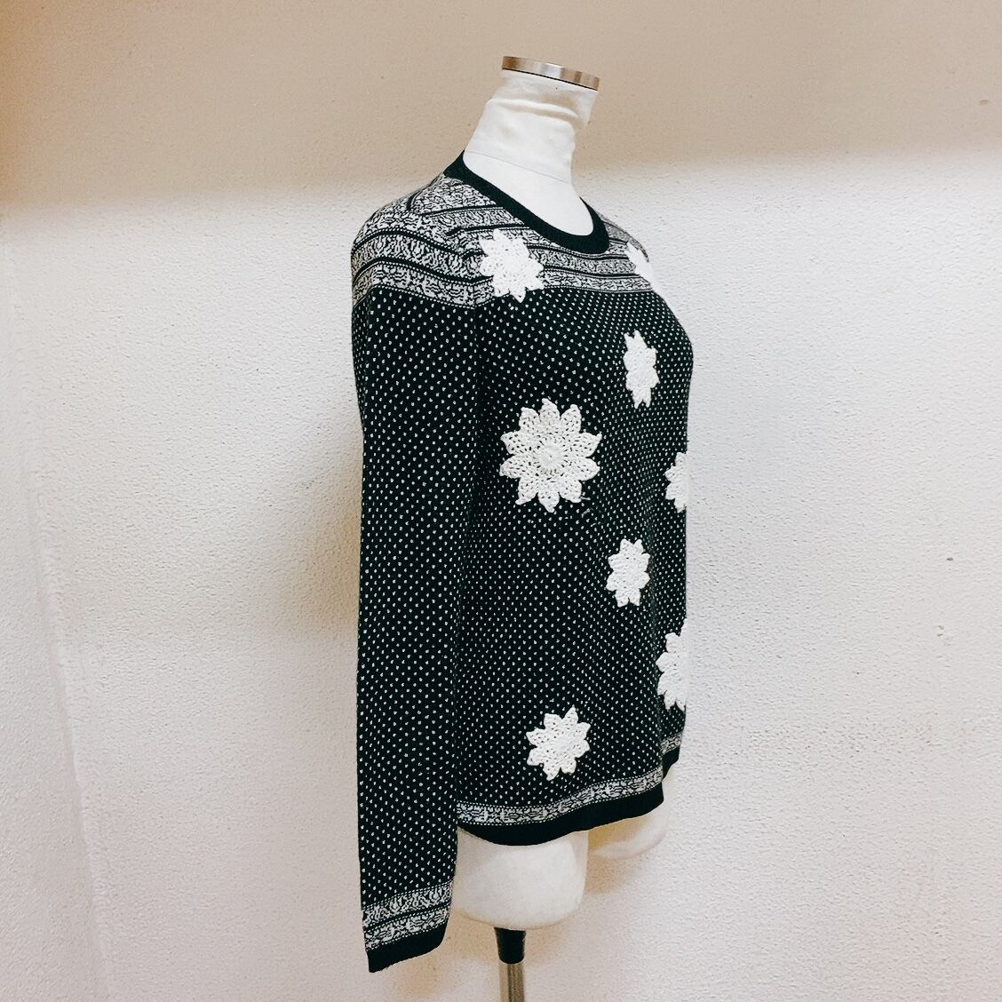 ランバン 長袖ニット 白 黒 雪柄 刺繍 LANVIN