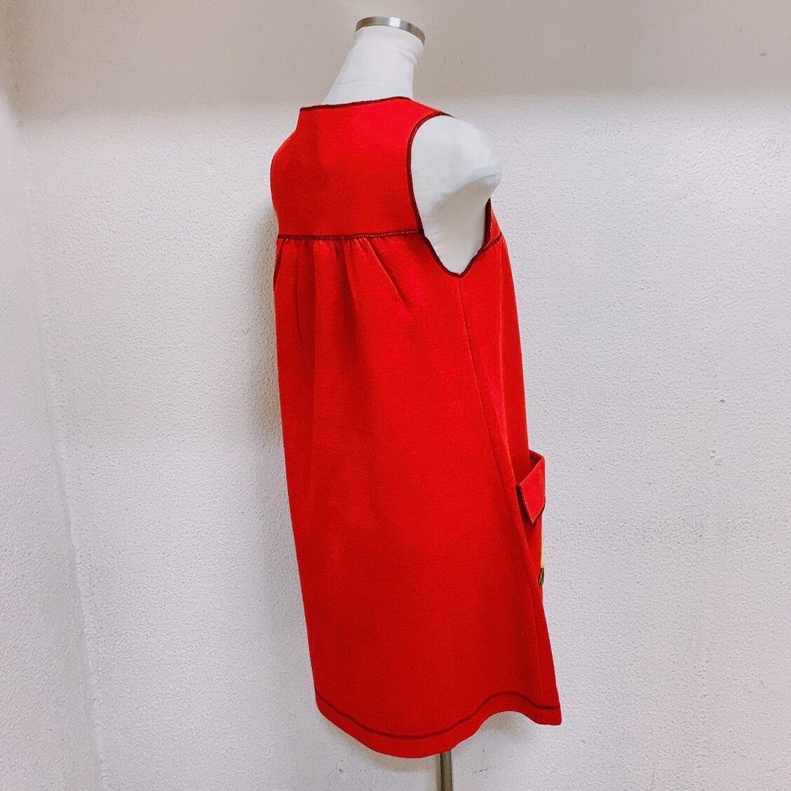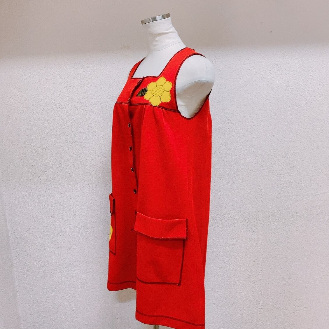 ヴィンテージ ノースリーブワンピース 赤色 花柄 ウール vintage onepiece