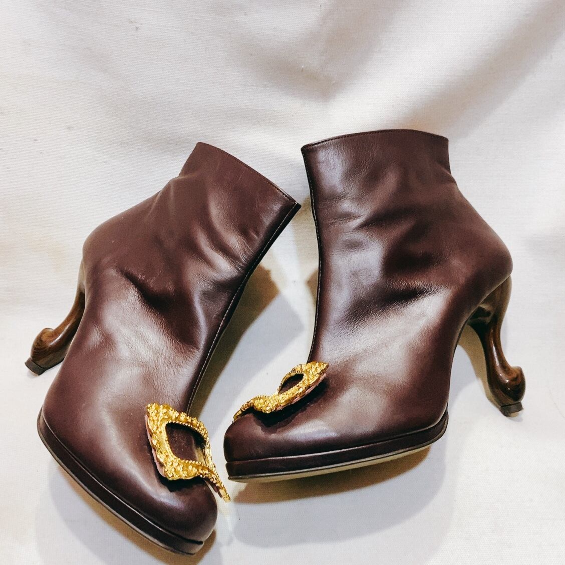 ちゃけちょけ ショートブーツ 焦げ茶色 レザー ブーティ