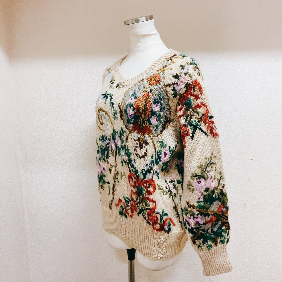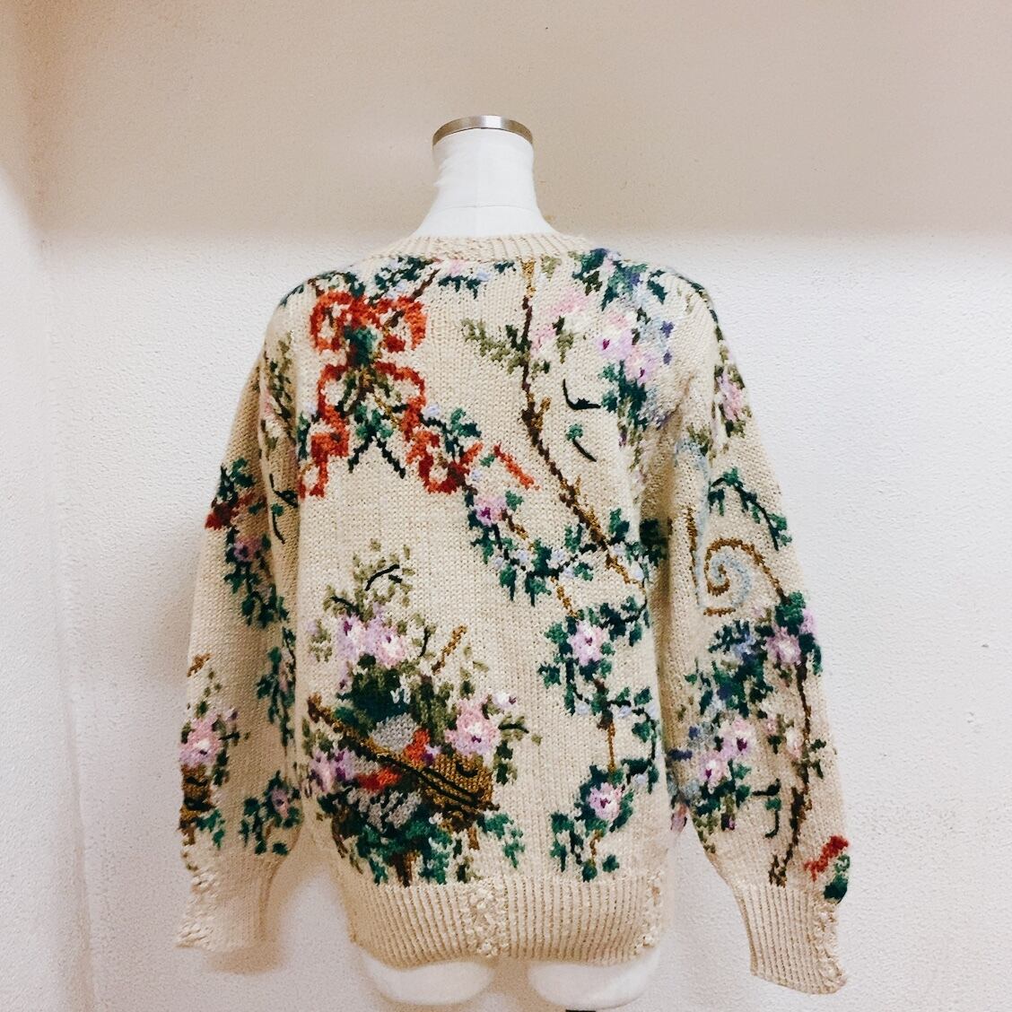 ヴィンテージ 長袖ニット ベージュ 花柄 vintage knit