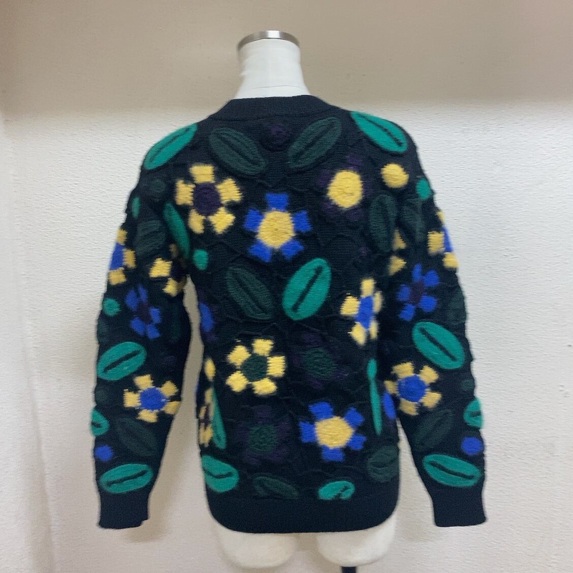 ヴィンテージ 長袖ニット 黒 青 黄 緑 花柄 3dニット vintage knit