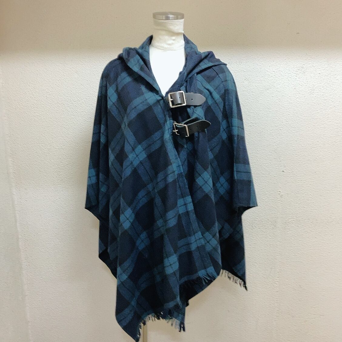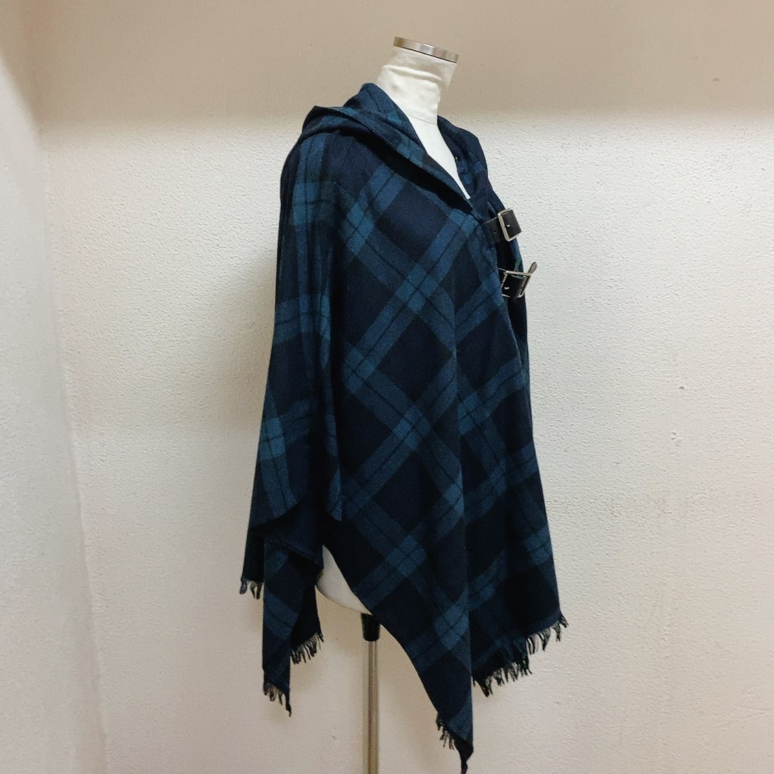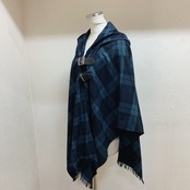 オニールオブダブリン ポンチョ 紺色 チェック柄 O'NEIL OF DUBLIN IRELAND アイルランド製
