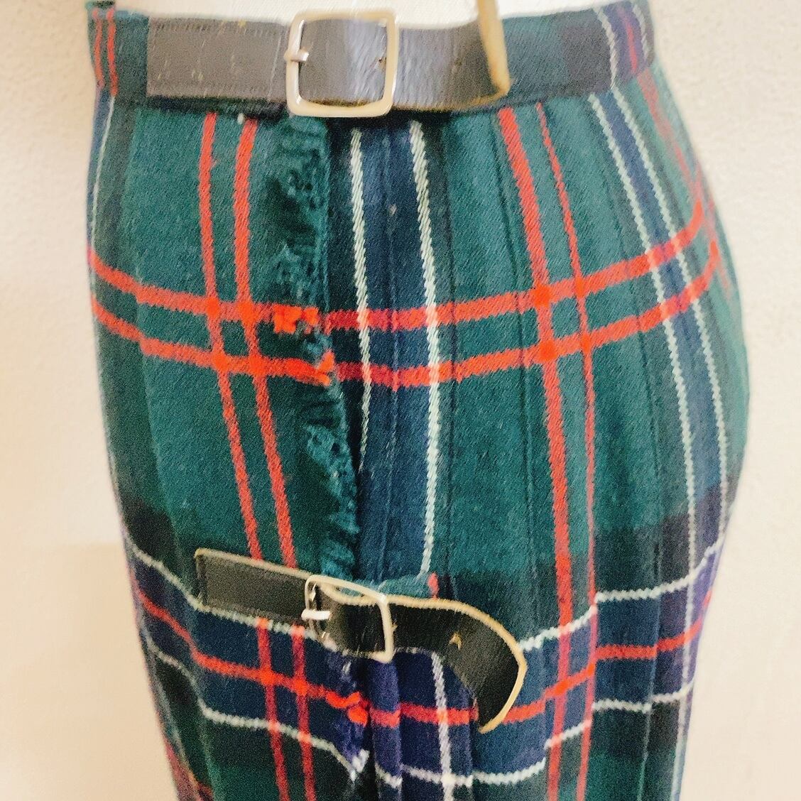 ヴィンテージ ウール巻きスカート 緑 チェック柄 マキシ丈 ロングスカート vintage wool skirt